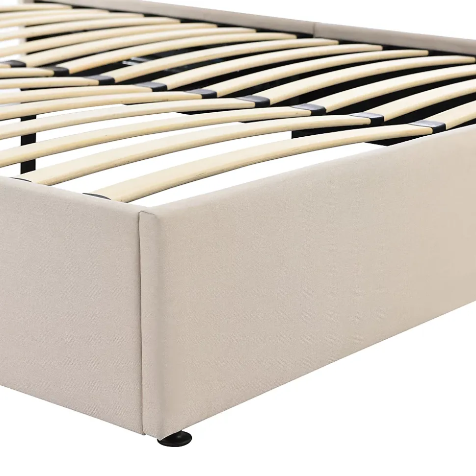 ▶ ▶ Détails ▶────────────────● Dimensions totales du lit : 214,5 x 173,5 x 114 cm (L x l x H)● Hauteur du pied de lit : 28 cm● Surface de couchage : 160 x 200 cm● Couleur : Beige● Poids net / brut : 52.8 / 54.4 kg● Matériaux : Linen + Métal● Poids maximum supporté : 199 kg / 400 LBS● Espace de rangement intérieur : 204 x 25 x 159 cm (L x H x P)● Matelas ● ▪ Dimensions totales : 160 x 200 x 25 cm▪ Nombre de ressorts : 720 pcs▪ Dureté : H3▪ Poids net / brut : 34 / 37 kg▪ Matériau : 100% Polyester● Nombre de colis : 3► Remarques ►※ En raison des mesures manuelles, un écart de 2-3 cm peut se produire.※ Toutes les images de produits sont prises avec des produits réels, mais en raison de l’impact de la lumière solaire et d’autres facteurs, des différences de couleur peuvent survenir.※ Ce produit est expédié en 3 colis. Ils peuvent ne pas arriver en même temps. Veuillez patienter patiemment.※ Si vous avez des questions pendant l’installation, veuillez nous contacter dès que possible.