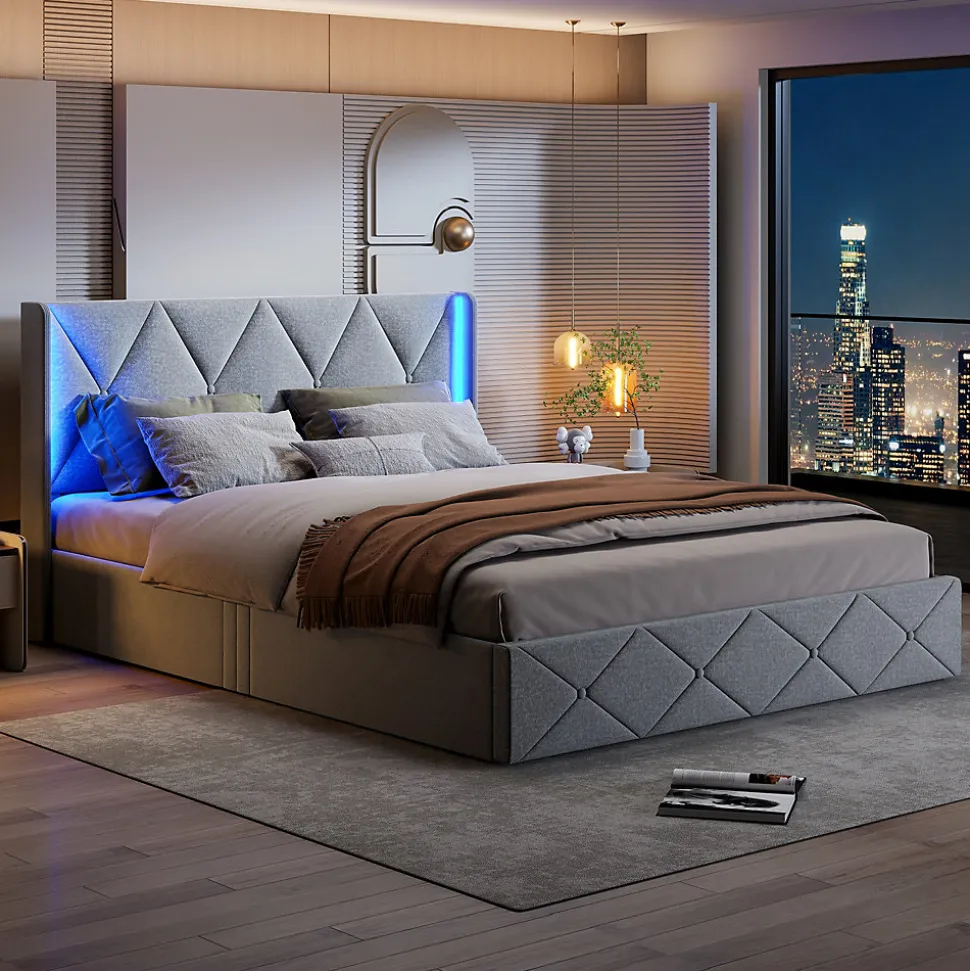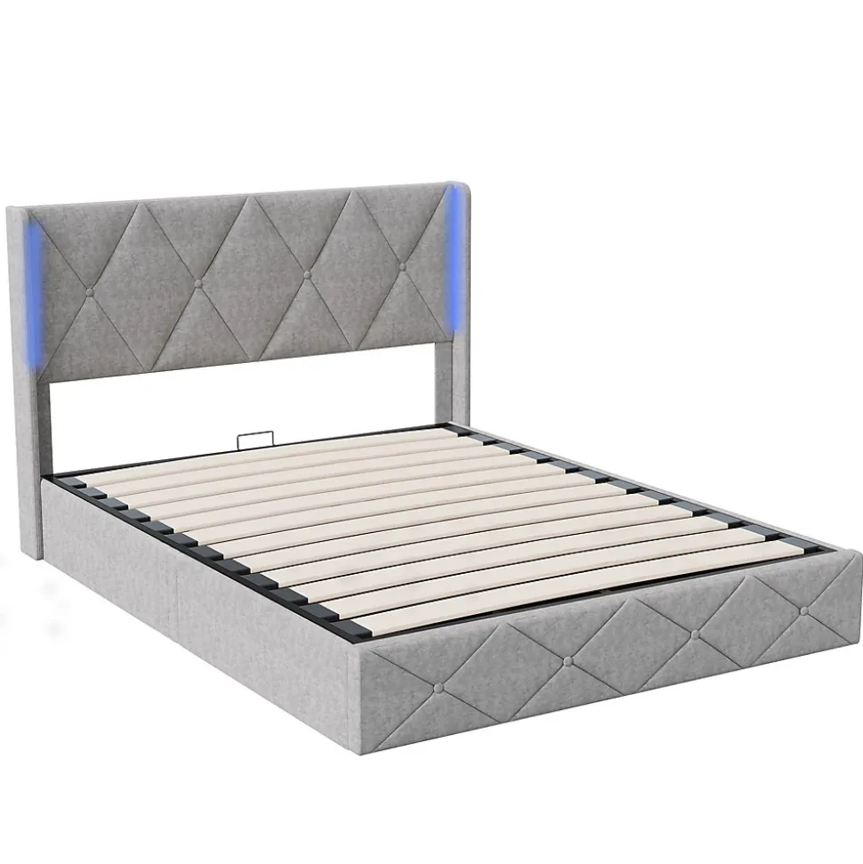 DescriptionRendez facilement votre maison unique, ce lit coussin en cuir artificiel avec bande lumineuse LED vaut la peine d’avoir, le lit double 140x200cm/160x200cm est un bon choix qu’il soit utilisé dans la chambre principale ou la chambre d’amis. Spécification:Taille du produit : 210 x 165 x 101 cmMatelas recommandé : 160 x 200 cm (hors matelas)Nombre de lattes : 12Matériau du produit : MDF + métal + linCapacité de charge : 350 kgNombre de colis : 2