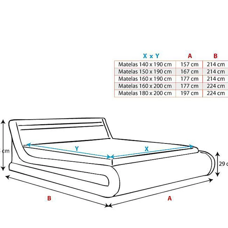 - Convient pour matelas 160 x 200 cm; épaisseur de matelas recommandée 16-18 mm indiquée (corrigé ci‑dessous).