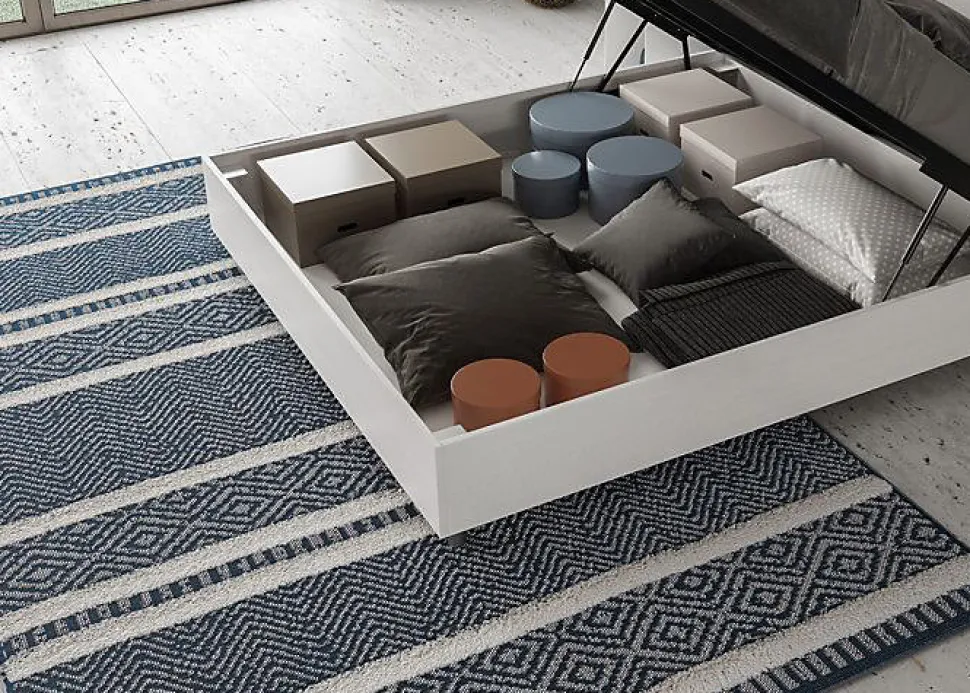 Lit double Kaia 160×200 avec tête de lit et lit en panneaux de mélamine, avec tête de lit recouverte en simili cuir, particulièrement polyvalent et facilement combinable avec n’importe quel style d’ameublement.Le lit double Kaia 160×200 se caractérise par un style minimal et polyvalent grâce aux surfaces simples et linéaires typiques du bois et au revêtement de tête de lit en simili cuir.La tête de lit avec revêtement en simili cuir, associée aux propriétés du bois, donnera à votre chambre un environnement chaleureux et accueillant.Lit fourni avec sommier à rangement, prévu pour un matelas 160×200 cm – Matelas non inclusHousse de tête de lit amovible.Produit ItyhomeFabriqué en ItalieDimensions lit : L.167 P.208 H.113 cmHauteur des pieds : 12 cmHauteur du lit : 26 cmHauteur du filet depuis le sol : 38 cmDimensions intérieures du conteneur : L.163 P.204 H.21 cm