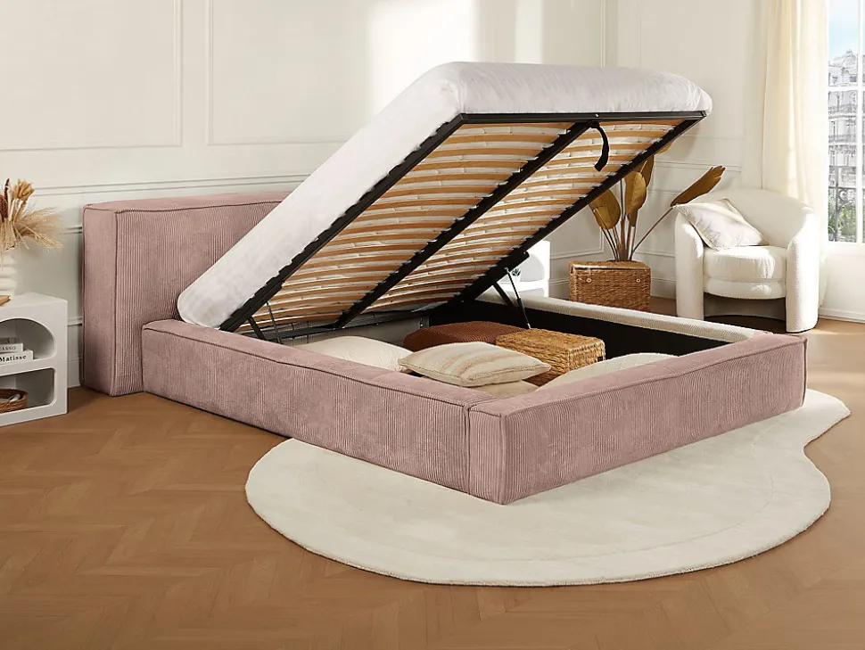- Lit coffre Velours, Polyester Rose