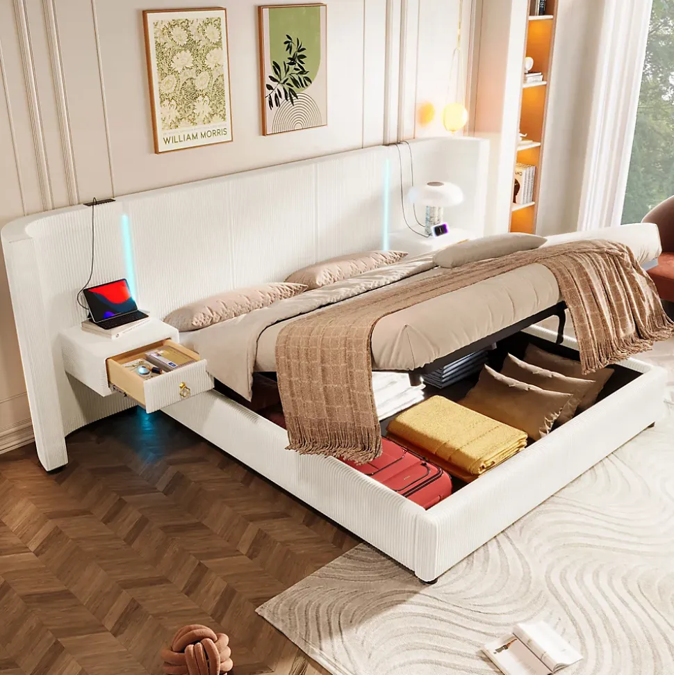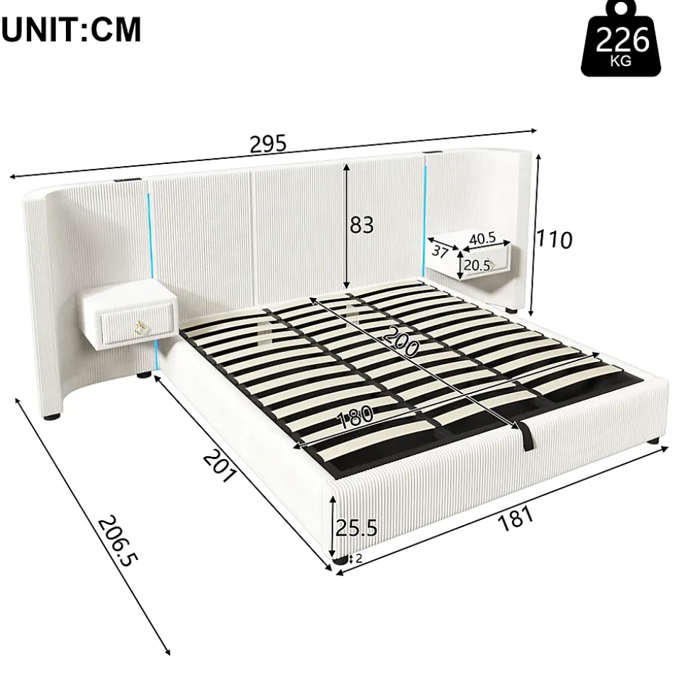 - 【Espace de rangement innovant】 Le coffre de rangement hydraulique s’ouvre facilement d’un simple clic et se ferme en douceur, offrant un espace généreux pour les couvertures et les effets personnels sans bruit.