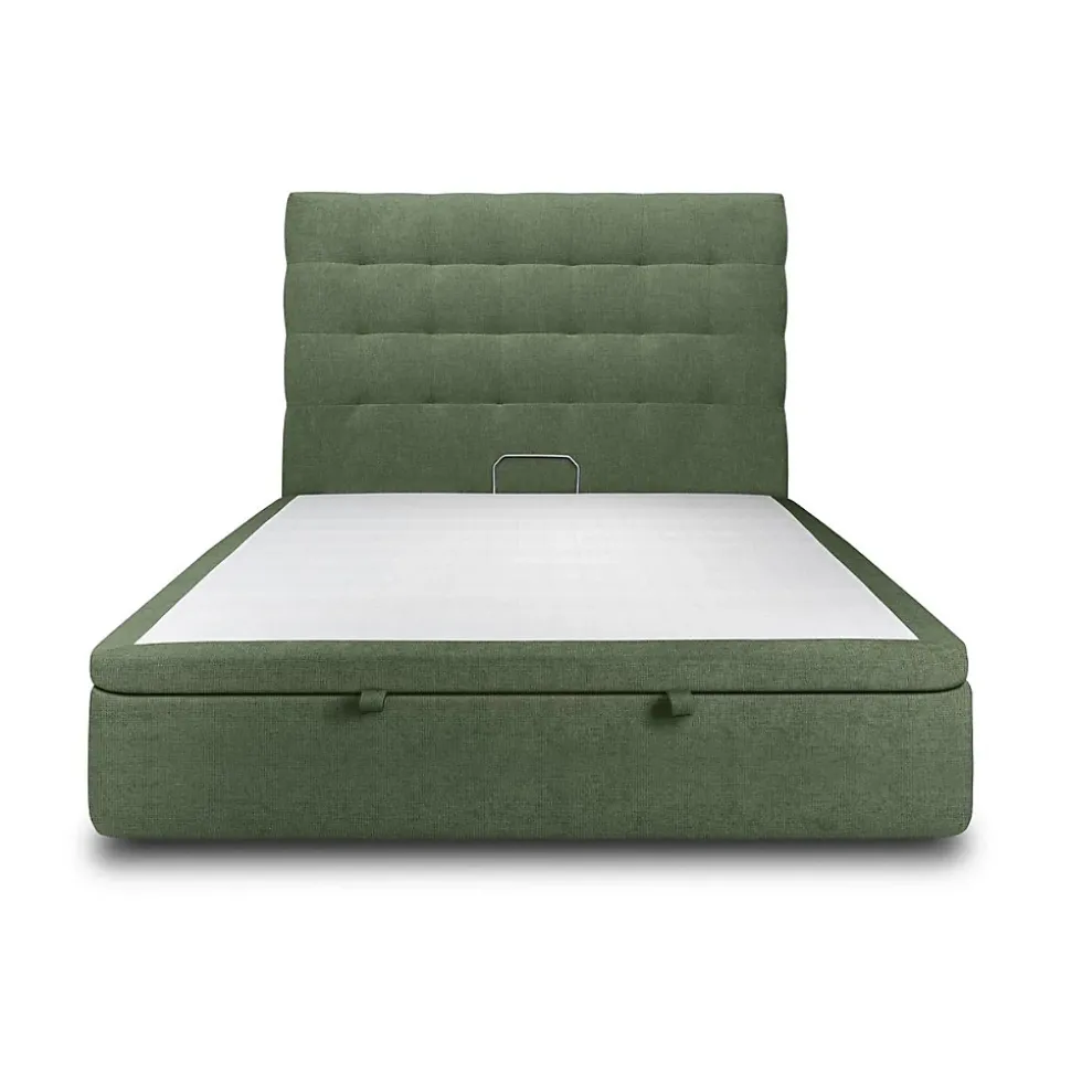 Lit coffre 180x200cm avec tête de lit capitonnée Tissu Vert – Hauteur totale : 39cm
