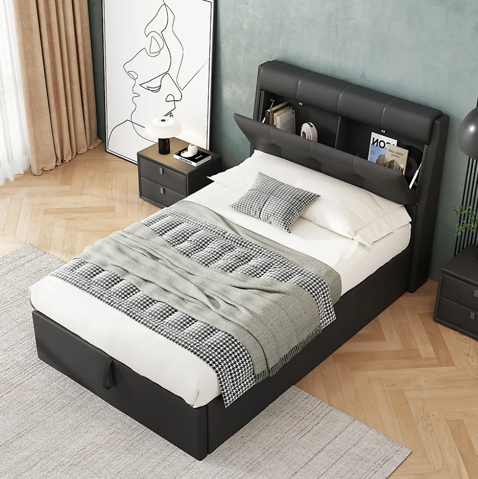 - 【Design Hydraulique Innovant】 Le système hydraulique facilite l’accès au coffre sous le lit, vous permettant de soulever la surface du matelas en toute simplicité pour un rangement pratique et sans effort.