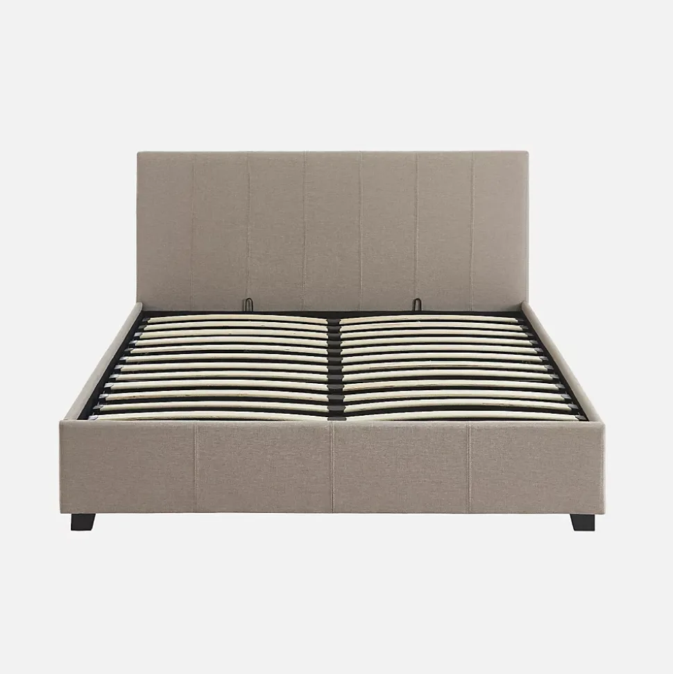 Les + produit :Coffre de rangementRobuste et durableTête de lit confortableSommier à lattes en bois compositeLes matériaux choisis pour la conception de notre lit Avalon assurent robustesse et longévité.Le bois d’eucalyptus, connu pour sa résistance, est combiné à des panneaux composites qui apportent une stabilité supplémentaire.Le revêtement en polyester est non seulement durable, mais aussi résistant à l’usure. La tête de lit procure un soutien additionnel qui améliore le confort global du lit, la rendant particulièrement agréable.Equipé d’une poignée pour lever le sommier, le coffre de rangement est un atout incontestable pour ranger tout ce dont on a besoin.Le lit Avalon s’adapte facilement à différents styles de décoration intérieure, apportant immédiatement une ambiance chaleureuse.Le sommier à lattes en bois composite assure une ventilation optimale du matelas tout en offrant un soutien uniforme. Cela permet de prolonger la durée de vie de votre matelas et à améliorer la qualité de votre sommeil, (et ça, c’est non négligeable !)Informations complémentaires :Existe aussi en d’autres tailles : Simple (90x190cm) / Queen size (160x200cm)Décliné en deux couleurs : beige et gris clair.Existe aussi en finition velours côtelé (grosse côte)Matelas non fourni.Produit à monter, notice fournie.Toutes les couleurs représentées à l’écran peuvent être altérées par plusieurs facteurs, mais aussi parfois par la configuration de votre écran, par la lumière et parfois même par l’angle de vision. Pour en savoir plus nous vous invitons alors à vous diriger vers notre service client qui se fera un plaisir de vous renseigner. Attention, les retours produits dû à ces motifs seront à la charge du client.Caractéristiques et dimensions :Dimensions : L 202 x P 148 x H 86cmHauteur d’assise : 29,5cmDimensions sommier : 190,5 x 139cmDimensions tête de lit : L 148 x P 5 x H 86cmDimensions coffre (intérieur) : 193 x 142 x 20cmNombre de lattes : 24 Dimensi