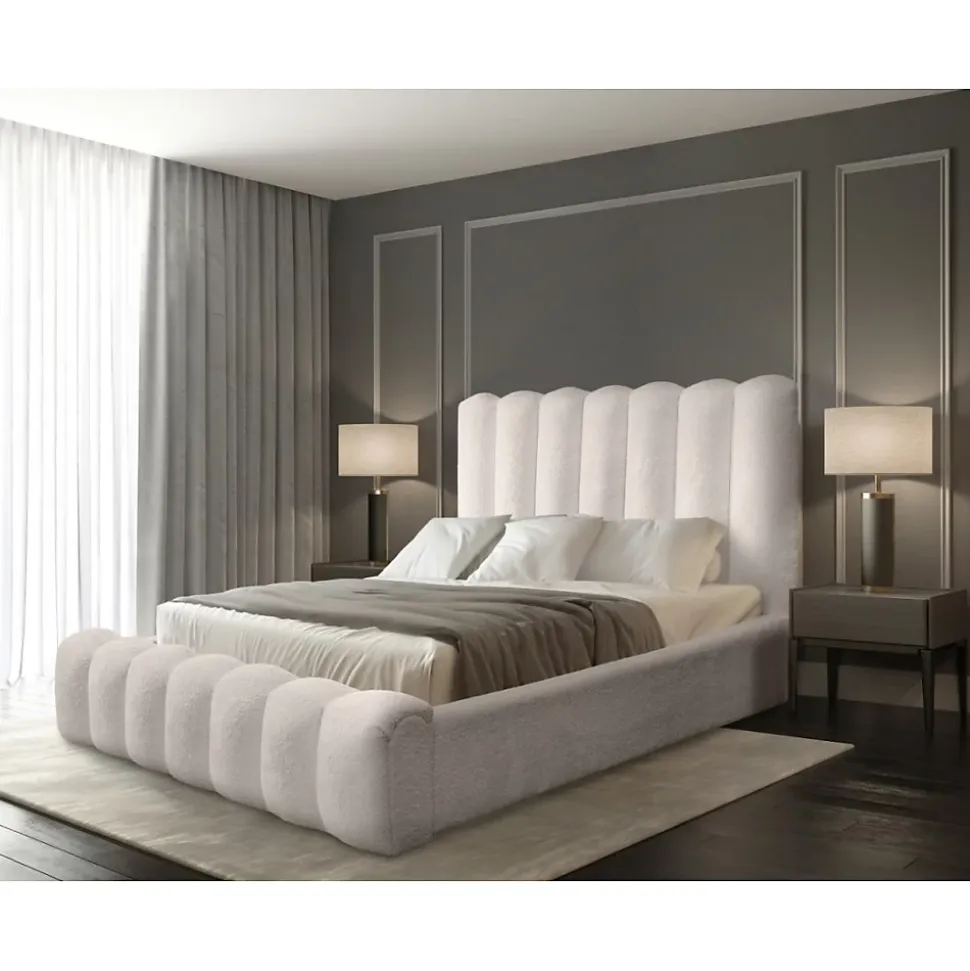 Lit coffre BADJA 180×200 cm en tissu bouclé Ivoire rosé – Élégance et rangement pratiqueOffrez à votre chambre un style raffiné et une ambiance lumineuse avec le lit coffre BADJA recouvert d’un tissu bouclé Ivoire rosé. Son design contemporain s’adapte parfaitement à un intérieur moderne et chic.Ce lit coffre est équipé d’un sommier relevable à lattes sur cadre métallique, assisté par des vérins à gaz pour un accès facile et sécurisé à un coffre spacieux, idéal pour maximiser votre rangement.La structure allie bois, métal, mousse et panneaux de particules pour garantir robustesse et durabilité.Pourquoi choisir le lit coffre BADJA 180×200 ?Avec des dimensions hors-tout de 240 x 195 x 120 cm, ce lit offre un couchage confortable et un espace de rangement pratique. Le tissu bouclé Ivoire rosé apporte une touche raffinée à votre chambre.Caractéristiques techniquesType : Lit coffre tapissé avec sommier relevableCollection : BADJADimensions couchage : 180×200 cmDimensions hors-tout : L240 x l195 x H120 cmStructure : Bois, métal, mousse, panneaux de particulesRevêtement : Tissu bouclé – Coloris Ivoire roséSommier : Lattes sur cadre métal avec vérins à gazCoffre : Rangement intégré accessible via sommier relevablePieds : Plastique discretNombre de colis : 4 (123 kg)Avantages du lit coffre BADJADesign moderne avec finitions soignéesGrand coffre de rangement spacieux et pratiqueTissu bouclé pour un confort et une esthétique raffinésMontage simple et rapide (environ 1h30)Découvrez la collection BADJA et explorez notre catégorie Lit pour compléter votre chambre avec style.