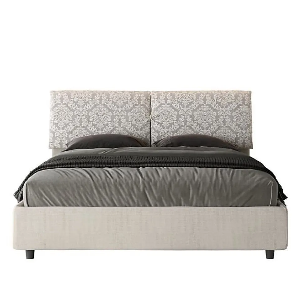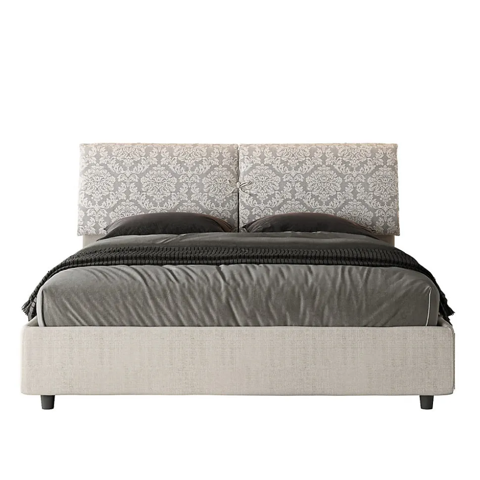 Lit double Mados 160×200 avec tête de lit et lit rembourrés, revêtement en tissu, particulièrement polyvalent et facilement combinable avec n’importe quel style d’ameublement.Le lit double Mados 160×200 se caractérise par un style élégant et raffiné grâce aux grands coussins de la tête de lit, il est entièrement recouvert de tissu.Un lit qui donnera une touche d’élégance à votre espace nuit, sans passer inaperçu, grâce aux caractéristiques distinctives de son revêtement en tissu.Lit fourni avec sommier à rangement, prévu pour un matelas 160×200 cm – Matelas non inclusCouvre-lit entièrement déhoussable.Produit ItyhomeFabriqué en ItalieDimensions lit : L.175 P.212 H.110 cmHauteur des pieds : 12 cmHauteur du lit : 27 cmHauteur du filet depuis le sol : 39 cmDimensions intérieures du conteneur : L.163 P.204 H.21 cm