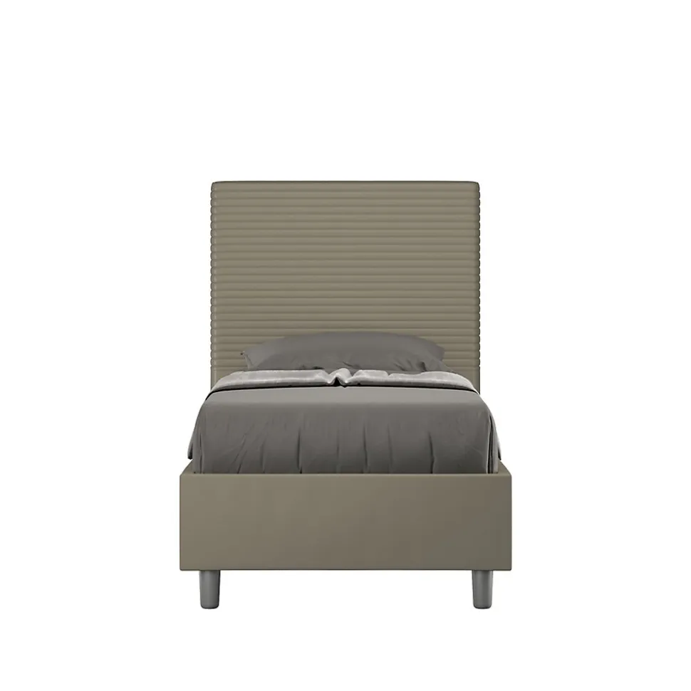 Lit simple 80×190 Focus avec tête de lit et lit rembourrés, revêtement en simili cuir, particulièrement polyvalent et facilement combinable avec n’importe quel style d’ameublement.Le lit simple Focus 80×190 se caractérise par un style moderne et élégant, mis en valeur par la tête de lit matelassée recouverte de simili cuir.La présence du matériau en simili cuir, en plus de donner à la pièce une atmosphère accueillante et invitante, offre la commodité d’un nettoyage rapide et facile, grâce à l’utilisation d’un simple chiffon en microfibre.Lit fourni avec sommier rangement, prévu pour un matelas 80×190 cm – Matelas non inclusCouvre-lit non amovible.Produit ItyhomeFabriqué en ItalieDimensions lit : L.95 P.210 H.122 cmHauteur des pieds : 12 cmHauteur du lit : 27 cmHauteur du filet depuis le sol : 39 cmDimensions intérieures du conteneur : L.83 P.194 H.21 cm