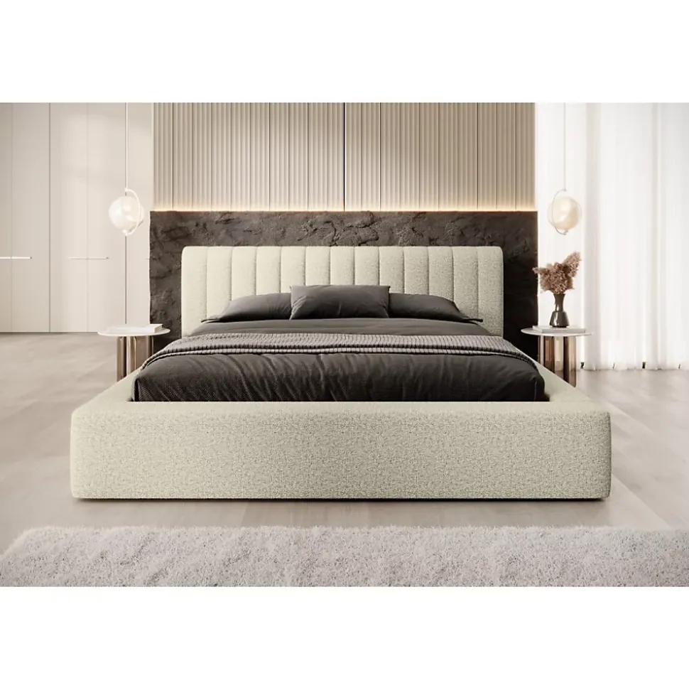 Lit coffre haut de gamme 180×200 en tissu bouclé taupe sablé – Confort et rangement optimiséApportez une ambiance chaleureuse et élégante à votre chambre avec le lit coffre CERVIN 180×200 cm en tissu bouclé taupe sablé. Ce tissu doux et texturé habille votre espace nuit d’un style raffiné et moderne.Ce lit intègre un sommier relevable à lattes en bois sur cadre métallique, équipé de vérins à gaz pour un accès simple et sécurisé à un grand coffre de rangement sous le couchage. Sa structure robuste en bois, métal, mousse et panneaux de particules garantit confort et durabilité.Pourquoi choisir notre lit coffre CERVIN 180×200 – Tissu bouclé taupe sablé avec sommier relevableLe coloris taupe sablé apporte douceur et chaleur, parfait pour un intérieur cosy et contemporain. Avec ses dimensions hors-tout de 238 x 220 x 86 cm, ce lit offre un excellent compromis entre fonctionnalité et design épuré.Caractéristiques techniques du lit CERVIN – Lit coffre 180×200 cm tissu bouclé taupe sablé Type de produit : Lit coffre tapissé avec sommier relevable Collection : CERVIN Dimensions couchage : 180×200 cm Dimensions hors-tout : L238 x l220 x H86 cm Structure : Bois, métal, mousse, panneaux de particules Revêtement : Tissu bouclé – Coloris taupe sablé Tête de lit : Pleine, droite – Hauteur 86 cm Sommier : Inclus – Lattes en bois sur cadre métal avec vérins à gaz Coffre de rangement : Oui – Intégré sur toute la surface du lit Hauteur du cadre : 31 cm Pieds : Plastique discret – Non visibles Nombre de colis : 4 (Poids total : 132 kg)Les avantages du lit CERVIN – Lit coffre 180×200 taupe sablé en tissu bouclé Tissu bouclé taupe sablé : Élégance naturelle et confort durable Coffre intégré : Rangement spacieux et pratique Sommier relevable à vérins : Ouverture facile et sécurisée Design contemporain : Parfait pour une chambre moderne et fonctionnelleDécouvrez la collection complète CERVIN et explorez la catégorie Lit pour un aménagement chic et fonctionnel de votre chamb
