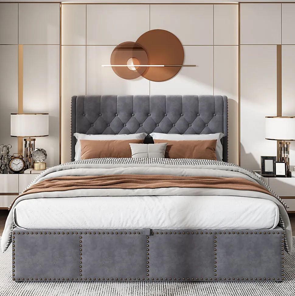 - 【Détails décoratifs soignés】 Le design à rivets métalliques en bout de lit ajoute une note d’originalité et de caractère, rendant chaque détail visuellement plus intéressant et unique.