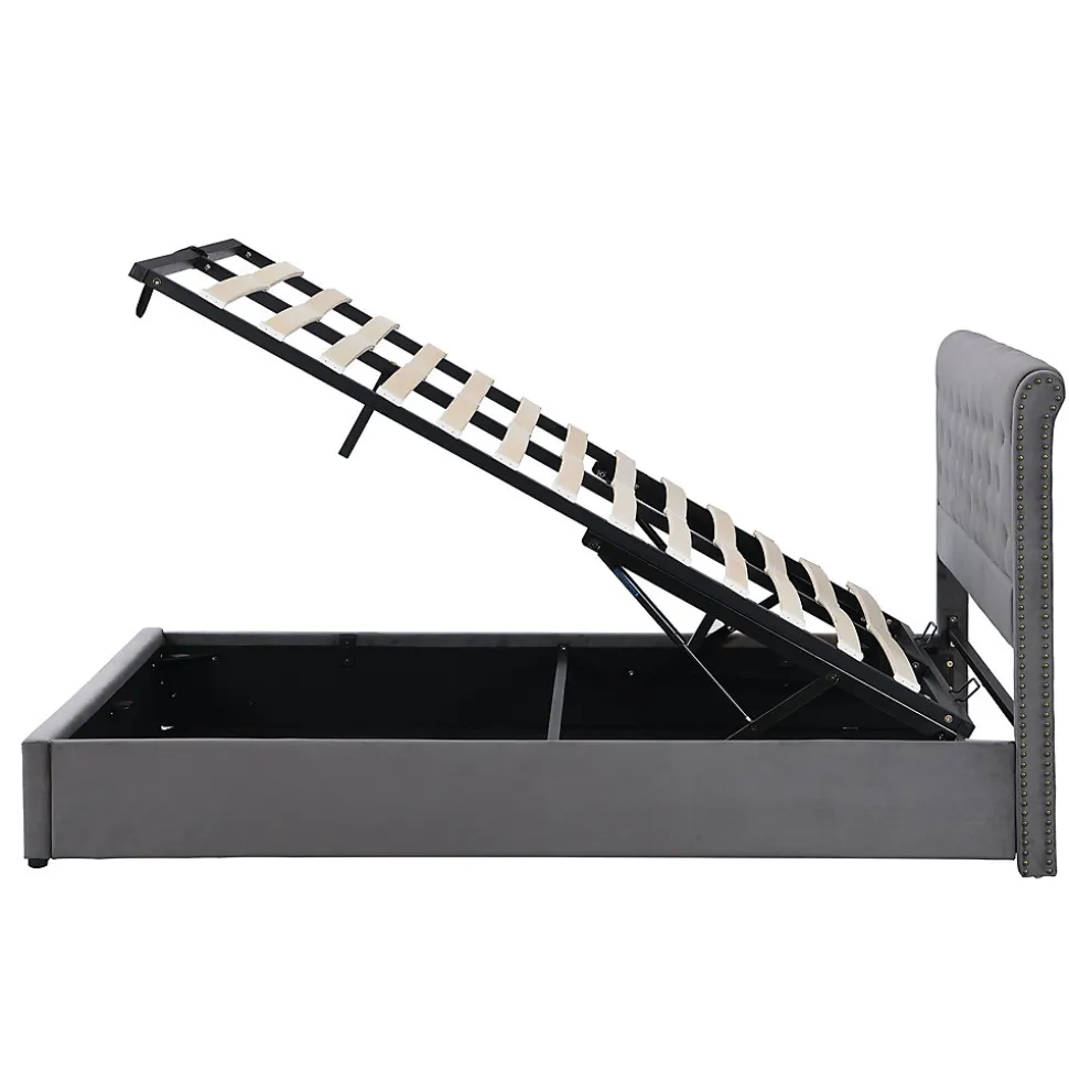 ▶ ▶ Détails ▶────────────────● Dimensions du produit : 207 × 181 × 102,5 cm (L x l x H)● Type de sommier : Sommier inclus● Type de matelas : Sans matelas● Détails de stockage : Coffres de rangement sous le lit● Poids net : 52 kg● Charge maximale : 300 kg● Matériau : Velours● Couleur : Gris● Nombre de colis : 2► Remarques ►※ En raison des mesures manuelles, un écart de 2 à 3 cm peut se produire.※ Des différences de couleur peuvent apparaître entre l’image du produit et le produit réel en raison de l’éclairage et d’autres facteurs. Merci de vous référer au produit réel que vous recevrez.※ Ce produit est expédié en 2 colis, qui peuvent arriver séparément. Merci de votre patience.※ Si vous avez des questions pendant l’installation, veuillez nous contacter dès que possible.