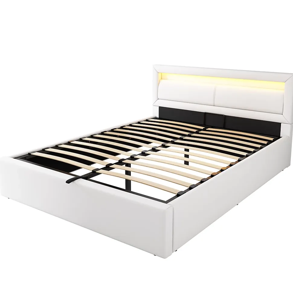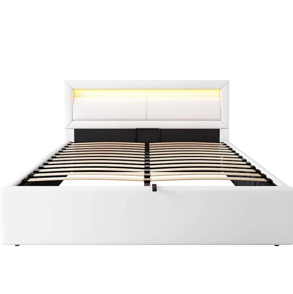 - 【Éclairage Ambiant】 Équipé de LED intégrées tout autour, ce lit crée une atmosphère chaleureuse avec une lumière douce. L’éclairage subtil facilite les déplacements nocturnes, tout en ajoutant une touche esthétique à la chambre.