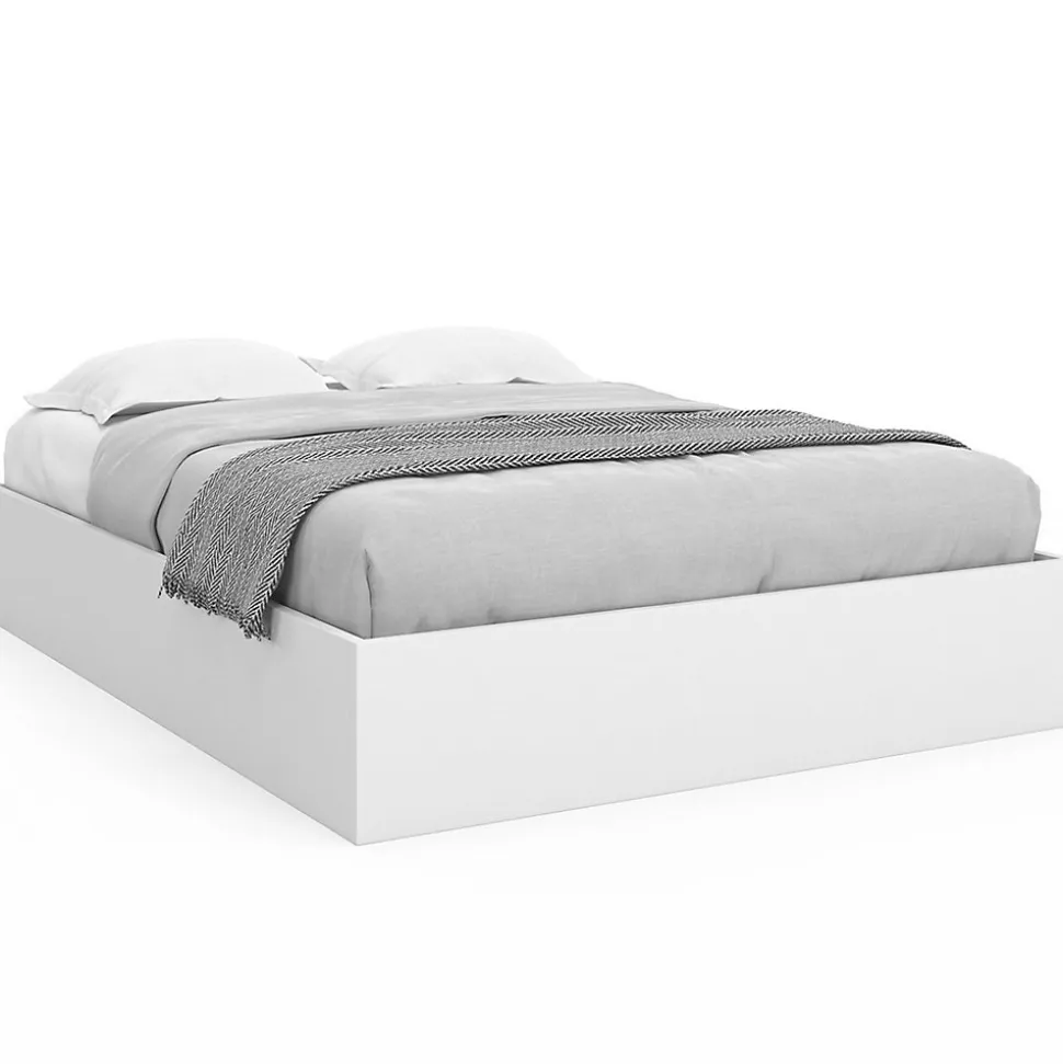 Apportez une touche moderne à votre chambre à coucher avec le lit coffre double avec sommier SANDSIDE 140 x 190 CM ! Avec son coloris blanc passe-partout, le design épuré de ce lit double s’intègrera parfaitement à tous types de décoration intérieure ! En plus d’avoir des finitions soignées, la structure du lit, pratique et fonctionnelle, abrite sous son sommier un grand coffre de rangement. Vous pourrez facilement y accéder grâce aux vérins de levage. Celui-ci vous permet d’y entreposer vos valises, votre linge de maison ou tout autre objet afin de conserver un espace nuit ordonné.Stable et robuste, ce coffre de lit est composé d’un sommier 24 lattes en bois tout confort et d’une barre transversale sous le sommier.Craquez pour le lit coffre double SANDSIDE et apportez style et praticité dans votre chambre à coucher ! Dimensions du lit coffre double SANDSIDE 140 x 190 CM blancDimensions globales : Longueur 195.5 cm x largeur 144.5 cm x Hauteur 30 cmHauteur du cadre : 30 cmSommier de 24 lattes inclusMatériaux : Panneaux de particules bois (PB) / MétalColoris : blancÀ monter soi-mêmeRetrouvez l’ensemble de notre gamme de lits sur notre boutique en ligne !