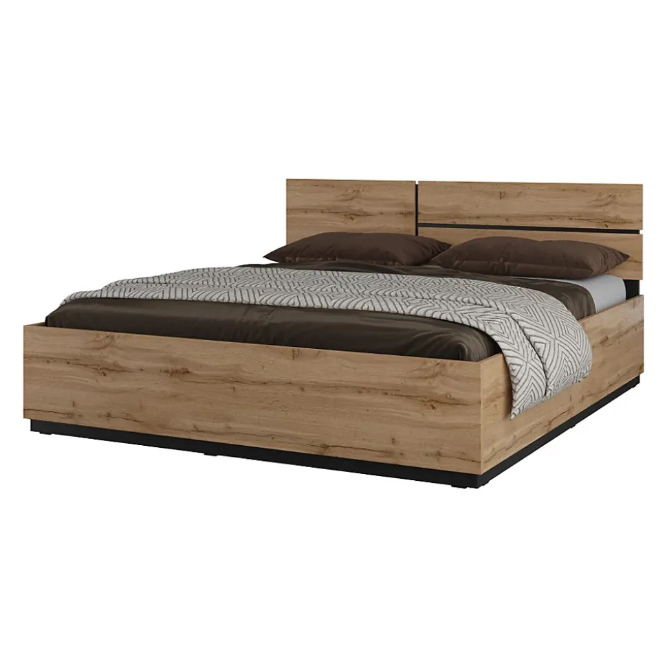 Lit HAVANA 180×200 cm chêne et noir avec coffre – Lit double moderne avec rangement intégréApportez une ambiance chaleureuse et graphique à votre chambre avec le lit HAVANA 180×200 cm en finitions chêne et noir. Ce lit double au design épuré combine esthétisme naturel et fonctionnalité, idéal pour les intérieurs contemporains ou scandinaves.Conçu en panneaux de particules de première qualité, il offre une excellente stabilité et une longue durabilité. La tête de lit haute en imitation chêne est soulignée par des détails noirs mats pour un rendu à la fois doux et moderne. Le sommier inclus se soulève facilement pour dévoiler un coffre de rangement spacieux, parfait pour optimiser l’espace dans votre chambre.Le lit HAVANA est disponible dans plusieurs dimensions (160×200 et 180×200 cm) et dans plusieurs coloris tels que le chêne ou le beige. Il peut également être commandé sans coffre de rangement, ou simplement avec sommier inclus selon vos besoins.Complétez votre aménagement avec les autres meubles de la collection HAVANA et explorez encore plus d’options dans notre catégorie Lit.Caractéristiques du produit :Type de produit : Lit 2 places 180×200 cm avec coffre de rangementCollection : HAVANADimensions : L184,1 cm x H90,8 cm x P204,6 cmColoris : Chêne / NoirMatériau : Panneaux de particules 18 mm – Finition effet bois et noir onyxSommier : Inclus – Relevable pour accès au coffreRangement : Coffre sous le sommierNombre de colis : 4Poids total : 119 kgMontage : À assembler soi-même – notice fournieAvantages du lit HAVANA :Look naturel et moderne : L’alliance du bois clair et du noir s’intègre facilement à toutes les décorations.Gain de place : Le coffre intégré permet un rangement discret et efficace.Personnalisable : Existe en plusieurs tailles et finitions, avec ou sans sommier/coffre.Pourquoi choisir ce lit ?Solution tout-en-un : Confort, design et espace de rangement réunis dans un seul lit.Esthétique chaleureuse : Finitions chêne pour une ambiance cosy.Structure