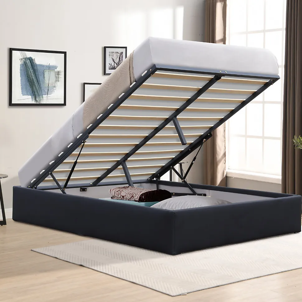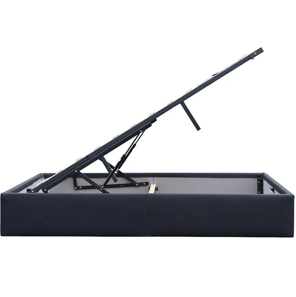 Lit Coffre dehoussable a Gaz + Sommier + 6 PiedsCOULEUR : noirCaractéristiques :1 Lit simple solide en placage Panneau composite de fibres de bois à densité, avec des lignes épurées, ce lit sera un ajout apprécié aux chambres et au salon, également idéal pour les petits espaces, les enfants, les adolescents, les invités et les adultes.2 Un sommier solide avec de 14 résistantes et confortables lattes en placage multiplis 5 cm de large et 0,9 cm d’épaisseur.3 Résistant aux chocs et aux rayures, épaisseur du métal +/- 1,2 mm. Tissu PVC : 100% polyvinyl chloride 220 gr/m2, rembourrage : mousse 100 % polyuréthane, simili étanche, très facile d’entretien.4 Livraison rapide.5 Hauteur du sommier 29 cm et épaisseur des longs pans 3 cm.S’il vous plaît noter :* Le matelas n’est pas inclus. À monter soi-même.* Ne serrez pas les vis jusqu’à ce qu’elles soient complètement assemblées. Les colis peuvent être séparés dans le transport.* Ne pas utiliser ce produit si des pièces sont manquantes, endommagées ou usées.* Ne pas permettre aux enfants de sauter sur le lit, car cela pourrait causer des dommages au châssis.* Veuillez vérifier et serrer toutes les vis et boulons tous les 3 mois pour assurer la stabilité.