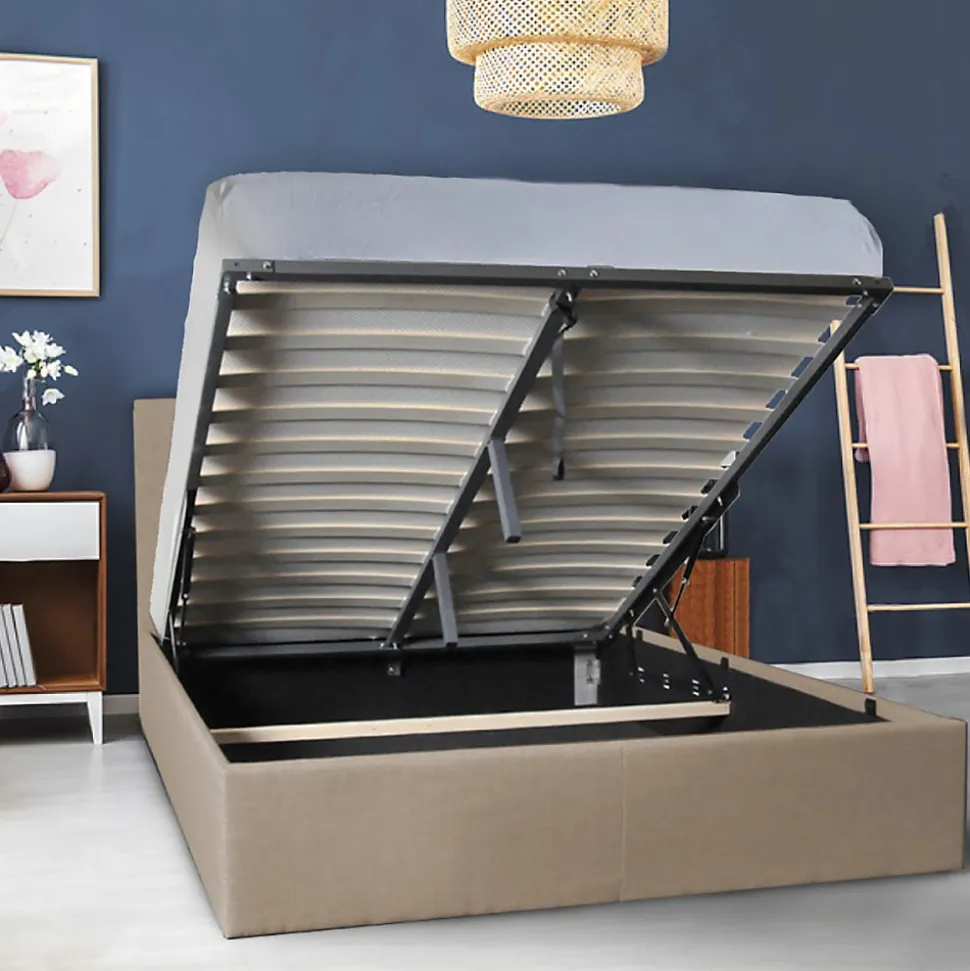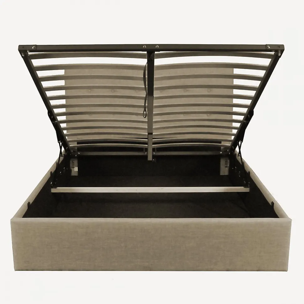 Lit PARMA 140×190 cm Le lit coffre PARMA est le lit idéal pour les personnes en quête de plus de solutions de rangement. Son design sobre et intemporel lui permet de s’adapter à tous les types d’intérieur. L’avantage du lit PARMA est son grand coffre de rangement dissimulé sous le sommier : un rangement supplémentaire spacieux pour stocker toutes vos affaires.Caractéristiques : Cadre: MDF + Mousse + TissuTête de lit capitonnéeFond du coffre en tissuSommier 2×12 lattes en bois.Livré démonté, sans matelas. A monter soi-mêmeDimensions:201x149x99