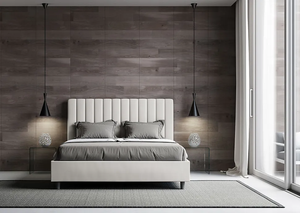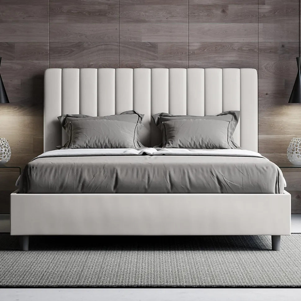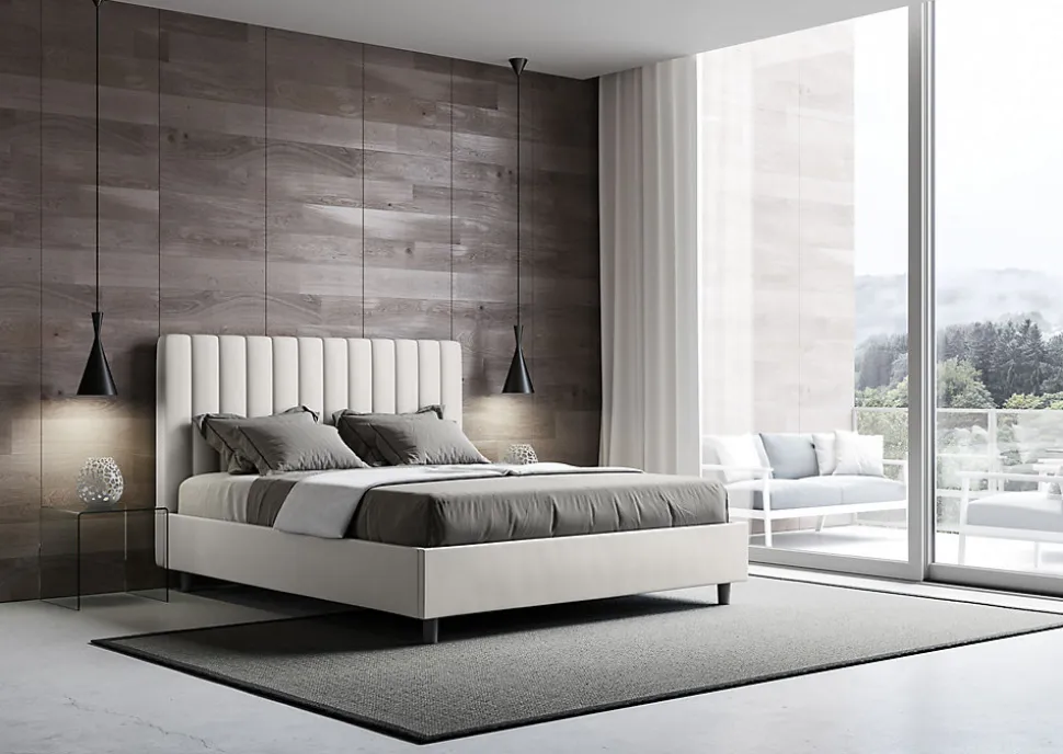 Lit double Agueda 160×200 avec tête de lit et lit rembourrés, revêtement en simili cuir, particulièrement polyvalent et facilement combinable avec n’importe quel style d’ameublement.Le lit double Agueda 160×200 se caractérise par un style moderne et élégant, mis en valeur par la tête de lit matelassée recouverte de simili cuir.La présence du matériau en simili cuir, en plus de donner à la pièce une atmosphère accueillante et invitante, offre la commodité d’un nettoyage rapide et facile, grâce à l’utilisation d’un simple chiffon en microfibre.Lit fourni avec sommier à rangement, prévu pour un matelas 160×200 cm – Matelas non inclusCouvre-lit non amovible.Produit ItyhomeFabriqué en ItalieDimensions lit : L.175 P.220 H.122 cmHauteur des pieds : 12 cmHauteur du lit : 27 cmHauteur du filet depuis le sol : 39 cmDimensions intérieures du conteneur : L.163 P.204 H