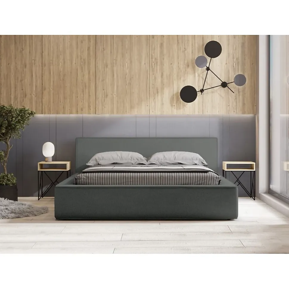 Lit coffre haut de gamme 180×200 en tissu bouclé ardoise – Design moderne avec rangement intégréApportez une touche d’élégance sobre et contemporaine à votre chambre avec le lit coffre VELORA 180×200 cm en tissu bouclé coloris ardoise. Son revêtement doux et texturé crée une ambiance chaleureuse et raffinée, tandis que son sommier relevable cache un coffre de rangement spacieux sous toute la surface du lit.Sa tête de lit droite de 86 cm propose un design épuré et moderne. Le sommier à lattes en bois, monté sur un cadre métallique équipé de vérins à gaz, offre une ouverture fluide et sécurisée. Sa structure robuste associe bois, métal, mousse et panneaux de particules pour un confort et une durabilité optimaux.Pourquoi choisir notre lit coffre VELORA 180×200 – Tissu bouclé ardoise avec rangement intégréLe coloris ardoise convient parfaitement aux intérieurs modernes et raffinés. Avec ses dimensions hors-tout de 240 x 220 cm, ce lit propose un couchage généreux ainsi qu’un rangement fonctionnel et discret.Caractéristiques techniques du lit VELORA – Lit coffre 180×200 cm bouclé ardoise Type de produit : Lit coffre tapissé avec sommier relevable Collection : VELORA Dimensions couchage : 180×200 cm Dimensions hors-tout : L240 x l220 x H86 cm Structure : Bois, métal, mousse, panneaux de particules Revêtement : Tissu bouclé – Coloris ardoise Tête de lit : Pleine, droite – Hauteur 86 cm Sommier : Inclus – Lattes en bois sur cadre métal avec vérins à gaz Coffre de rangement : Oui – Intégré sur toute la surface du lit Hauteur du cadre : 36 cm Pieds : Plastique discret – Non visibles Nombre de colis : 4 (Poids total : 132 kg)Les avantages du lit VELORA – Lit coffre 180×200 ardoise bouclé Tissu bouclé ardoise : Ton neutre et moderne, très élégant Coffre intégré : Rangement spacieux et fonctionnel Sommier relevable à vérins : Ouverture facile et sécurisée Design épuré : Parfait pour une chambre contemporaine et raffinéeDécouvrez la gamme complète VELORA et explor