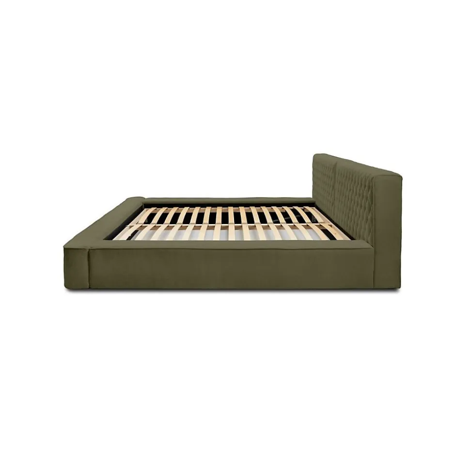 Lit coffre VERNON 140×200 cm en tissu chenille bouclé Feuille d’olivier – Élégance et confort premiumApportez une touche de nature et de sérénité à votre chambre avec le lit coffre VERNON habillé d’un tissu chenille bouclé Feuille d’olivier haut de gamme. Sa texture douce et sa teinte apaisante créent une atmosphère chaleureuse et élégante.Ce lit coffre associe des matériaux nobles — bois massif, métal renforcé et mousse haute densité — pour une robustesse et un confort supérieurs. Son sommier relevable, équipé de lattes en bois massif sur cadre métallique et de vérins à gaz, facilite l’accès à un coffre spacieux, parfait pour optimiser votre rangement.Pourquoi choisir le lit coffre VERNON 140×200 ?Avec ses dimensions généreuses de 238 x 180 x 86 cm, ce lit design combine esthétique haut de gamme et fonctionnalité optimale. Le tissu chenille bouclé premium garantit une excellente résistance et un confort supérieur au quotidien.Caractéristiques techniques premium Type : Lit coffre tapissé avec sommier relevable Collection : VERNON Dimensions couchage : 140×200 cm Dimensions hors-tout : L238 x l180 x H86 cm Structure : Bois massif, métal renforcé, mousse haute densité, panneaux de particules premium Revêtement : Tissu chenille bouclé premium – Coloris Feuille d’olivier Sommier : Lattes bois massif sur cadre métallique avec vérins à gaz haut de gamme Coffre : Grand espace de rangement sécurisé et pratique Pieds : Plastique robuste et discret Nombre de colis : 4 (115 kg)Avantages exclusifs du lit coffre VERNON Design soigné avec finitions haut de gamme Matériaux nobles garantissant durabilité et confort exceptionnel Grand coffre pour un rangement pratique et optimisé Montage facile et rapide (environ 1h49)Découvrez la collection VERNON et explorez notre catégorie Lit pour sublimer votre chambre avec un mobilier haut de gamme.