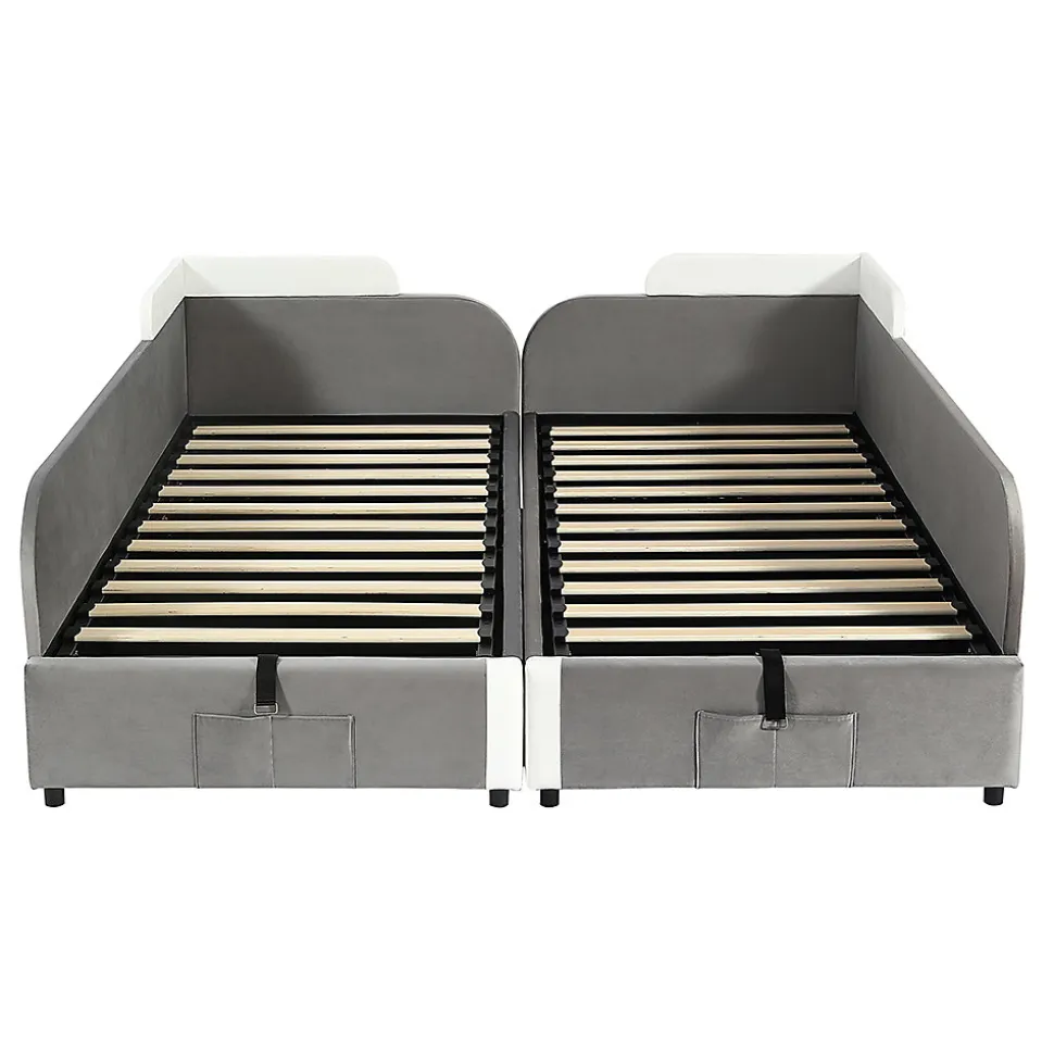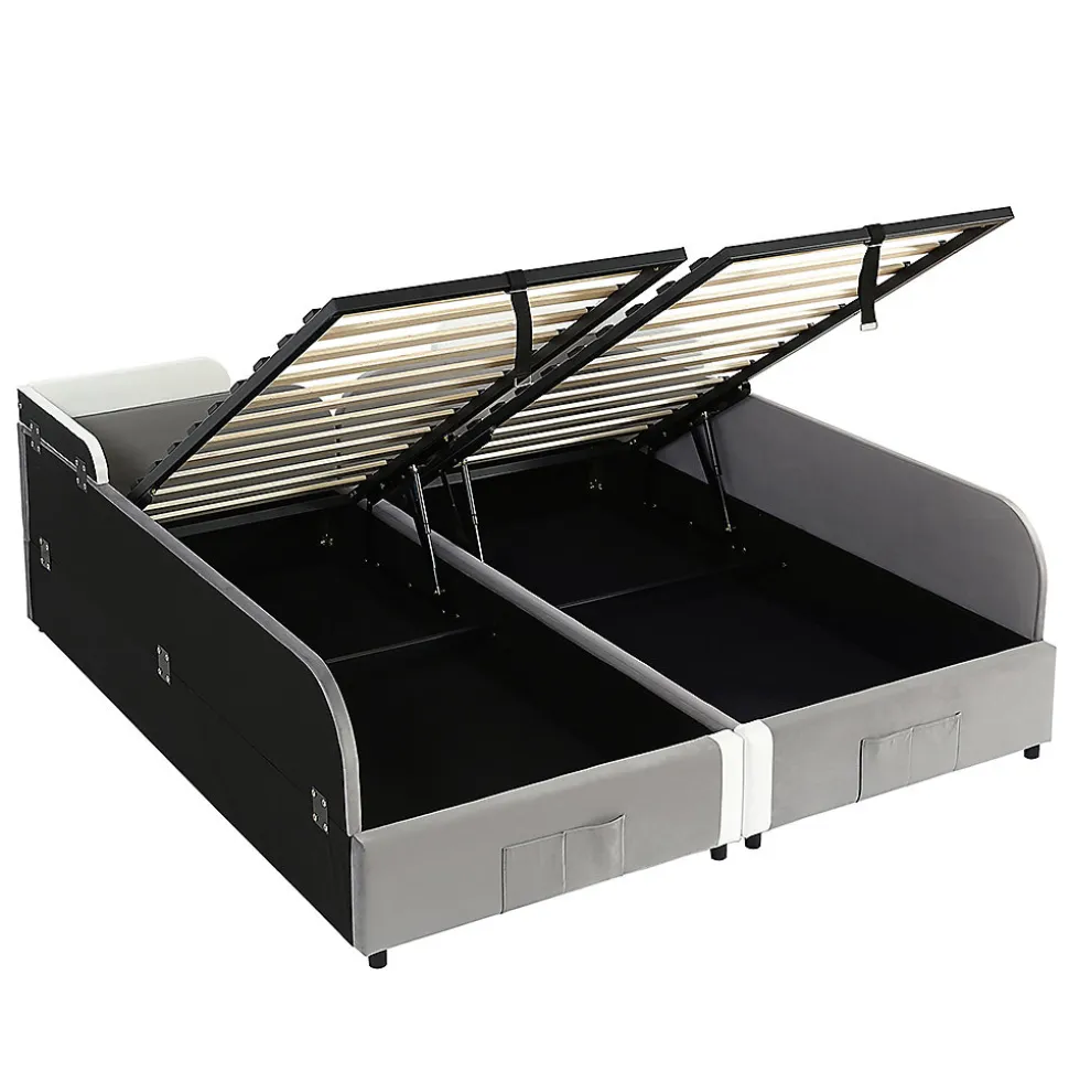 - Solutions de rangement pratiques : en plus de l’espace de rangement hydraulique, il dispose d’un sac de rangement pratique au pied du lit, dans lequel les petits objets tels que les peluches ou les livres d’histoires peuvent être rangés à portée de main. Des poignées supplémentaires facilitent le déplacement ou le réglage du lit.