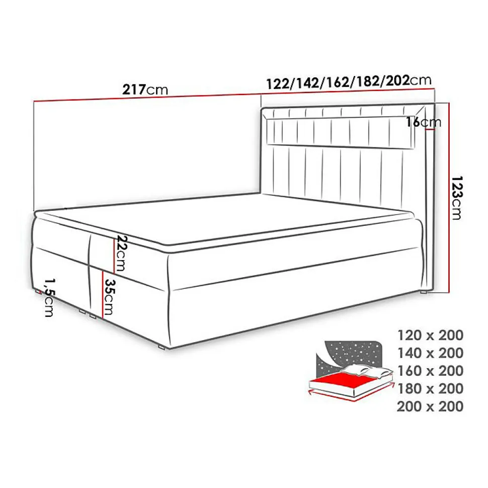 Lit continental Baltimore 131 (Soft 029) Caractéristiques: Largeur: 202 cm; Origine: Union européenne; Sommier à lattes: Disponible; Matelas: Disponible; Boîte de literie: Disponible; Taille du matelas: 2000 x 2000 cm; Hauteur: 123 cm; Longueur: 217 cm; Poids: 187 kg; Capacité de poids maximale: 240 kg; Matériau: Faux cuir; Pieds: Plastique; Type de matelas: Avec ressorts (Pocket); Fermeté du matelas: Moyen; Hauteur de la zone de couchage: 60 cm; LED: Disponible; Matériau du cadre: Stratifié; Matériau du cadre: Bois; Caractéristiques du matelas: Mousse de polyuréthane; Surmatelas: Disponible; Hauteur du pied: 1.5 cm; Épaisseur du surmatelas: 1.5 cm; Caractéristiques du surmatelas: Mousse de polyuréthane; Caractéristiques du surmatelas: Lavable; Caractéristiques du surmatelas: À deux côtés; Caractéristiques du surmatelas: Antiallergique; Caractéristiques du surmatelas: Antifongique; Caractéristiques du surmatelas: Respirant; Résistance: 68000 Cycles Martindale; Type de materiau: Métal chromé; Tête de lit: Disponible; Mécanisme de levage: Ressort; Dimensions de la boîte à literie: 33 x 97 x 197cm; Code produit: 209248