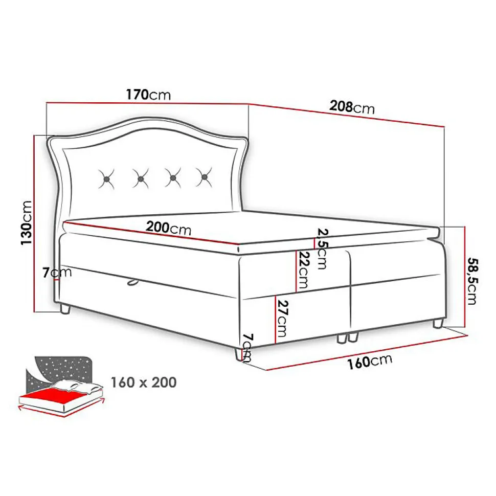 Lit continental Baltimore 135 (Magic Velvet 2260) Caractéristiques: Largeur: 170 cm; Origine: Union européenne; Sommier à lattes: Disponible; Matelas: Disponible; Boîte de literie: Disponible; Taille du matelas: 1600 x 2000 cm; Hauteur: 130 cm; Longueur: 208 cm; Poids: 162 kg; Capacité de poids maximale: 240 kg; Matériau: Tissu; Pieds: Métal; Type de matelas: Avec ressorts (Pocket); Fermeté du matelas: Moyen; Hauteur de la zone de couchage: 56 cm; Matériau du cadre: Stratifié; Matériau du cadre: Bois; Caractéristiques du matelas: Mousse de polyuréthane; Surmatelas: Disponible; Hauteur du pied: 7 cm; Hauteur du matelas: 22 cm; Épaisseur du surmatelas: 1.5 cm; Caractéristiques du surmatelas: Mousse de polyuréthane; Caractéristiques du surmatelas: Lavable; Caractéristiques du surmatelas: À deux côtés; Caractéristiques du surmatelas: Antiallergique; Caractéristiques du surmatelas: Antifongique; Caractéristiques du surmatelas: Respirant; Résistance: 60000 Cycles Martindale; Type de materiau: Velours; Type de materiau: Métal chromé; Tête de lit: Disponible; Mécanisme de levage: Ressort; Code produit: 210959