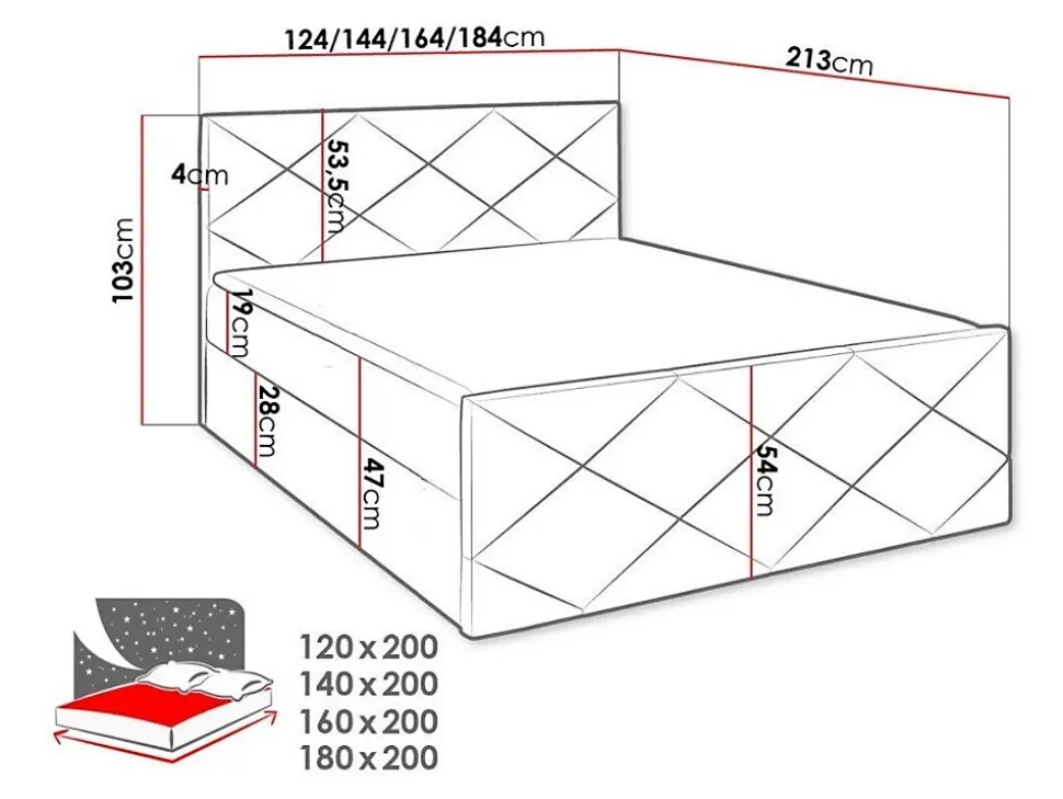 Lit continental Baltimore 155 (Muna 08) Caractéristiques: Largeur: 164 cm; Origine: Union européenne; Sommier à lattes: Disponible; Matelas: Disponible; Boîte de literie: Disponible; Taille du matelas: 1600 x 2000 cm; Hauteur: 103 cm; Longueur: 213 cm; Poids: 130 kg; Matériau: Tissu; Pieds: Absent; Type de matelas: Avec ressorts (Bonnell); Fermeté du matelas: Moyen; Hauteur de la zone de couchage: 47 cm; Matériau du cadre: Stratifié; Matériau du cadre: Bois; Caractéristiques du matelas: Mousse polyuréthane t25; Surmatelas: Disponible; Hauteur du matelas: 19 cm; Épaisseur du surmatelas: 1.5 cm; Caractéristiques du surmatelas: Lavable; Caractéristiques du surmatelas: À deux côtés; Caractéristiques du surmatelas: Antiallergique; Caractéristiques du surmatelas: Antifongique; Caractéristiques du surmatelas: Respirant; Hauteur du cadre: 28 cm; Résistance: 100000 Cycles Martindale; Dimensions de la tête de lit: 103 x 164 x 4cm; Tête de lit: Disponible; Mécanisme de levage: Ressort; Dimensions de la boîte à literie: 25 x 197 x 77cm; Code produit: 376486