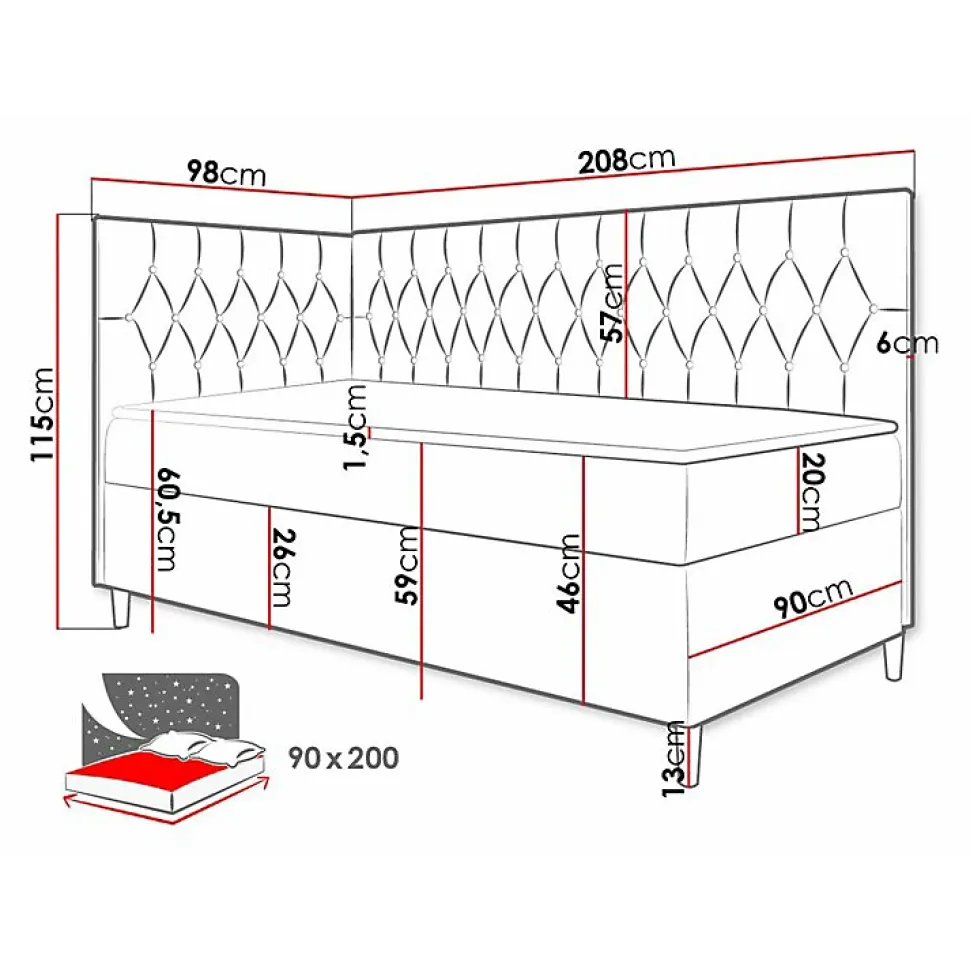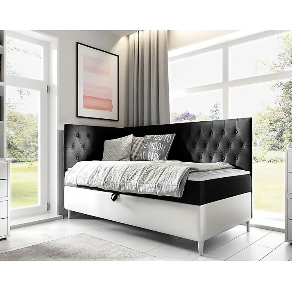 Lit continental Baltimore 167 (Soft 017 + Fresh 17) Caractéristiques: Largeur: 98 cm; Origine: Union européenne; Sommier à lattes: Disponible; Matelas: Disponible; Boîte de literie: Disponible; Taille du matelas: 900 x 2000 cm; Hauteur: 115 cm; Longueur: 208 cm; Poids: 39 kg; Matériau: Faux cuir; Matériau: Tissu; Pieds: Bois; Type de matelas: Avec ressorts (Bonnell); Fermeté du matelas: Moyen; Hauteur de la zone de couchage: 60.5 cm; Matériau du cadre: Stratifié; Matériau du cadre: Bois; Caractéristiques du matelas: Mousse polyuréthane t25; Surmatelas: Disponible; Hauteur du pied: 13 cm; Hauteur du matelas: 20 cm; Épaisseur du surmatelas: 1.5 cm; Caractéristiques du surmatelas: Lavable; Caractéristiques du surmatelas: À deux côtés; Caractéristiques du surmatelas: Antiallergique; Caractéristiques du surmatelas: Antifongique; Caractéristiques du surmatelas: Respirant; Type de materiau: Velours; Tête de lit: Disponible; Mécanisme de levage: Ressort; Dimensions de la boîte à literie: 25 x 197 x 87cm; Code produit: 469987