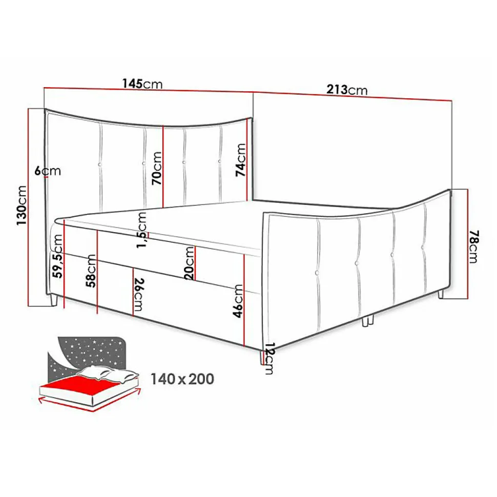 Lit continental Baltimore 177 (Fresh 37) Caractéristiques: Largeur: 140 cm; Origine: Union européenne; Sommier à lattes: Disponible; Matelas: Disponible; Boîte de literie: Disponible; Taille du matelas: 1400 x 2000 cm; Hauteur: 130 cm; Longueur: 213 cm; Poids: 108.51 kg; Matériau: Tissu; Pieds: Bois; Type de matelas: Avec ressorts (Bonnell); Fermeté du matelas: Moyen; Hauteur de la zone de couchage: 47.5 cm; Matériau du cadre: Stratifié; Matériau du cadre: Bois; Caractéristiques du matelas: Mousse polyuréthane t25; Surmatelas: Disponible; Hauteur du pied: 12 cm; Épaisseur du surmatelas: 1.5 cm; Caractéristiques du surmatelas: Lavable; Caractéristiques du surmatelas: À deux côtés; Caractéristiques du surmatelas: Antiallergique; Caractéristiques du surmatelas: Antifongique; Caractéristiques du surmatelas: Respirant; Résistance: 81000 Cycles Martindale; Type de materiau: Velours; Dimensions de la tête de lit: 70 x 145 x 6cm; Tête de lit: Disponible; Mécanisme de levage: Ressort; Dimensions de la boîte à literie: 25 x 197 x 67cm; Code produit: 471388