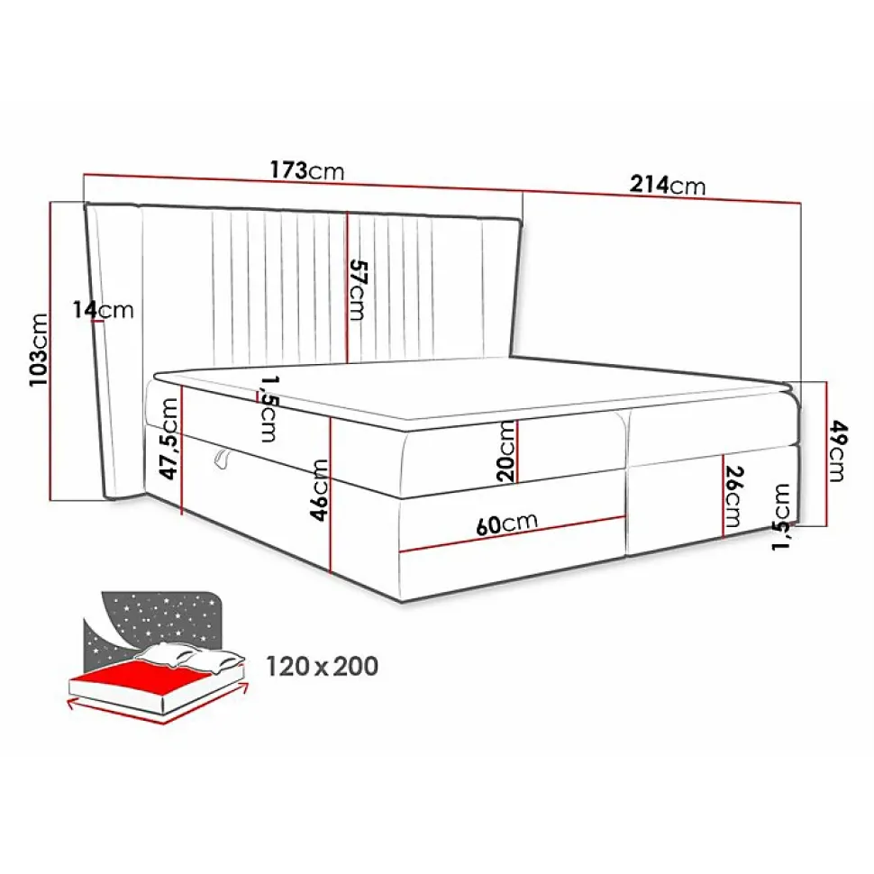 Lit continental Baltimore 184 (Magic Velvet 2225) Caractéristiques: Largeur: 173 cm; Origine: Union européenne; Sommier à lattes: Disponible; Matelas: Disponible; Boîte de literie: Disponible; Taille du matelas: 1200 x 2000 cm; Hauteur: 103 cm; Longueur: 214 cm; Poids: 97.5 kg; Matériau: Tissu; Pieds: Absent; Type de matelas: Avec ressorts (Bonnell); Fermeté du matelas: Moyen; Hauteur de la zone de couchage: 47.5 cm; Matériau du cadre: Stratifié; Matériau du cadre: Bois; Caractéristiques du matelas: Mousse polyuréthane t25; Surmatelas: Disponible; Épaisseur du surmatelas: 1.5 cm; Caractéristiques du surmatelas: Lavable; Caractéristiques du surmatelas: À deux côtés; Caractéristiques du surmatelas: Antiallergique; Caractéristiques du surmatelas: Antifongique; Caractéristiques du surmatelas: Respirant; Résistance: 60000 Cycles Martindale; Type de materiau: Velours; Dimensions de la tête de lit: 57 x 173 x 14cm; Tête de lit: Disponible; Mécanisme de levage: Ressort; Dimensions de la boîte à literie: 25 x 197 x 57cm; Code produit: 472652