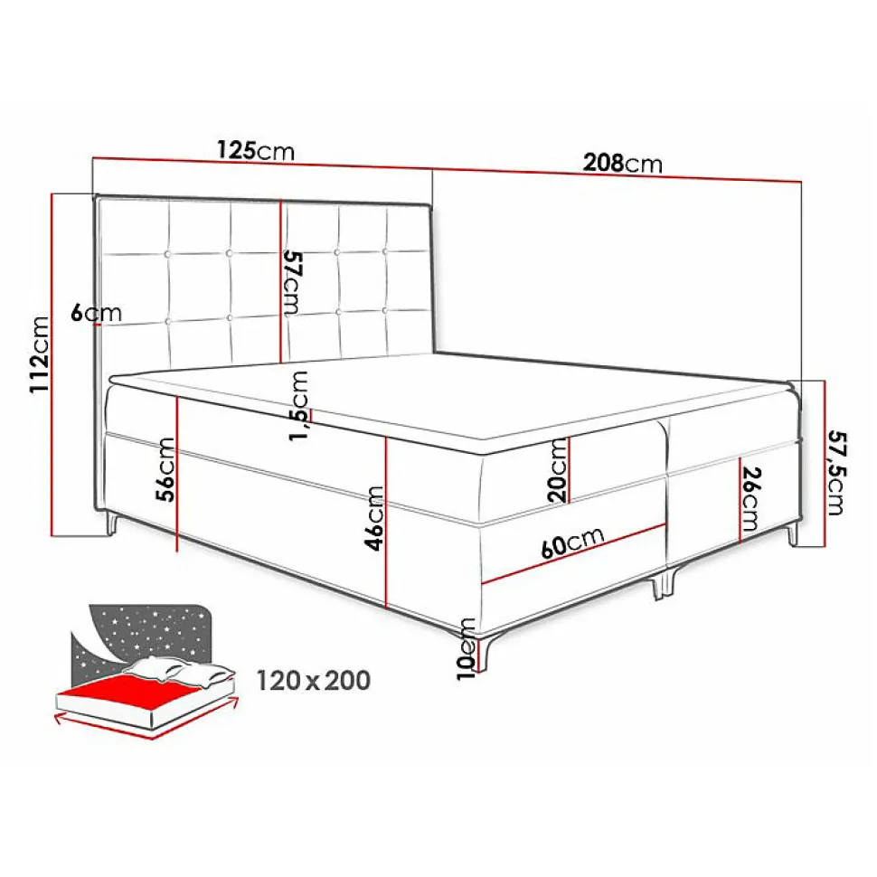 Lit continental Baltimore 185 (Fresh 33) Caractéristiques: Largeur: 125 cm; Origine: Union européenne; Sommier à lattes: Disponible; Matelas: Disponible; Boîte de literie: Disponible; Taille du matelas: 1200 x 2000 cm; Hauteur: 112 cm; Longueur: 208 cm; Poids: 97.5 kg; Matériau: Tissu; Pieds: Métal; Type de matelas: Avec ressorts (Bonnell); Fermeté du matelas: Moyen; Hauteur de la zone de couchage: 47.5 cm; Matériau du cadre: Stratifié; Matériau du cadre: Bois; Caractéristiques du matelas: Mousse polyuréthane t25; Surmatelas: Disponible; Hauteur du pied: 10 cm; Épaisseur du surmatelas: 1.5 cm; Caractéristiques du surmatelas: Lavable; Caractéristiques du surmatelas: À deux côtés; Caractéristiques du surmatelas: Antiallergique; Caractéristiques du surmatelas: Antifongique; Caractéristiques du surmatelas: Respirant; Résistance: 81000 Cycles Martindale; Type de materiau: Velours; Type de materiau: Peluche; Dimensions de la tête de lit: 57 x 125 x 6cm; Tête de lit: Disponible; Mécanisme de levage: Ressort; Dimensions de la boîte à literie: 25 x 197 x 57cm; Code produit: 472792