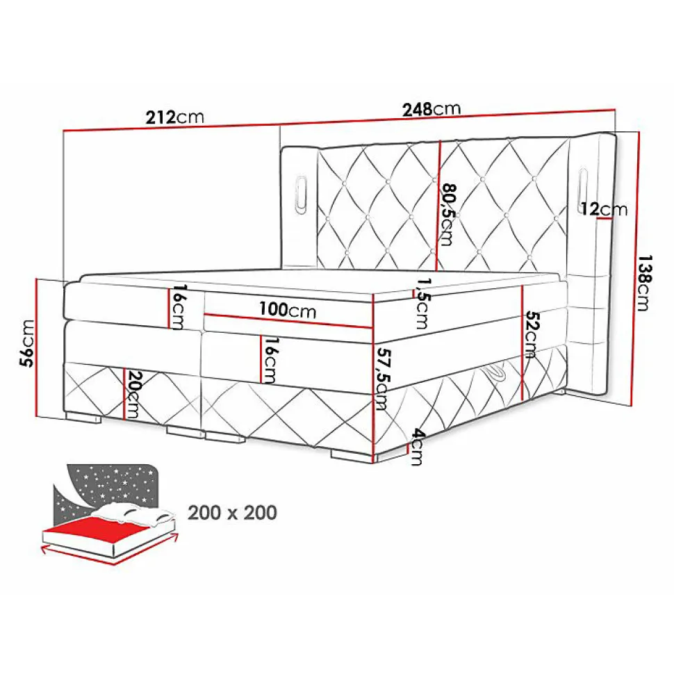 Lit continental Baltimore 187 (Kameleon 04) Caractéristiques: Largeur: 248 cm; Origine: Union européenne; Sommier à lattes: Disponible; Matelas: Disponible; Boîte de literie: Disponible; Taille du matelas: 2000 x 2000 cm; Hauteur: 138 cm; Longueur: 212 cm; Poids: 147 kg; Matériau: Tissu; Pieds: Bois; Type de matelas: Avec ressorts (Pocket); Fermeté du matelas: Moyen; Hauteur de la zone de couchage: 56 cm; LED: Disponible; Matériau du cadre: Stratifié; Matériau du cadre: Bois; Caractéristiques du matelas: Mousse polyuréthane t25; Surmatelas: Disponible; Hauteur du pied: 4 cm; Épaisseur du surmatelas: 1.5 cm; Caractéristiques du surmatelas: Mousse de polyuréthane; Caractéristiques du surmatelas: Lavable; Caractéristiques du surmatelas: À deux côtés; Caractéristiques du surmatelas: Antiallergique; Caractéristiques du surmatelas: Antifongique; Caractéristiques du surmatelas: Respirant; Type de materiau: Peluche; Dimensions de la tête de lit: 142 x 248 x 12cm; Tête de lit: Disponible; Mécanisme de levage: Ressort; Dimensions de la boîte à literie: 19 x 197 x 96cm; Bois: Pin; Code produit: 494421