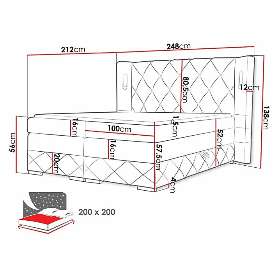 Lit continental Baltimore 187 (Kameleon 84) Caractéristiques: Largeur: 248 cm; Origine: Union européenne; Sommier à lattes: Disponible; Matelas: Disponible; Boîte de literie: Disponible; Taille du matelas: 2000 x 2000 cm; Hauteur: 138 cm; Longueur: 212 cm; Poids: 147 kg; Matériau: Tissu; Pieds: Bois; Type de matelas: Avec ressorts (Pocket); Fermeté du matelas: Moyen; Hauteur de la zone de couchage: 56 cm; LED: Disponible; Matériau du cadre: Stratifié; Matériau du cadre: Bois; Caractéristiques du matelas: Mousse polyuréthane t25; Surmatelas: Disponible; Hauteur du pied: 4 cm; Épaisseur du surmatelas: 1.5 cm; Caractéristiques du surmatelas: Mousse de polyuréthane; Caractéristiques du surmatelas: Lavable; Caractéristiques du surmatelas: À deux côtés; Caractéristiques du surmatelas: Antiallergique; Caractéristiques du surmatelas: Antifongique; Caractéristiques du surmatelas: Respirant; Type de materiau: Peluche; Dimensions de la tête de lit: 142 x 248 x 12cm; Tête de lit: Disponible; Mécanisme de levage: Ressort; Dimensions de la boîte à literie: 19 x 197 x 96cm; Bois: Pin; Code produit: 494441