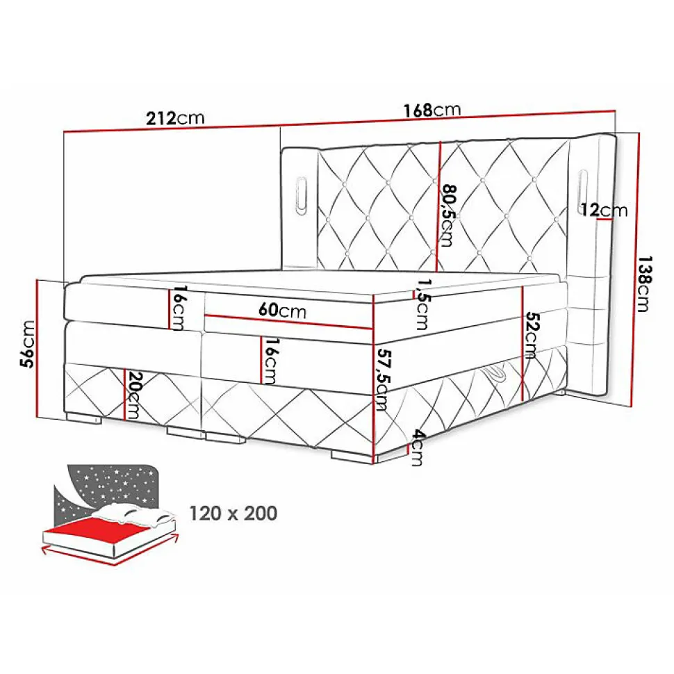Lit continental Baltimore 187 (Kameleon 04) Caractéristiques: Largeur: 168 cm; Origine: Union européenne; Sommier à lattes: Disponible; Matelas: Disponible; Boîte de literie: Disponible; Taille du matelas: 1200 x 2000 cm; Hauteur: 138 cm; Longueur: 212 cm; Poids: 110 kg; Matériau: Tissu; Pieds: Bois; Type de matelas: Avec ressorts (Pocket); Fermeté du matelas: Moyen; Hauteur de la zone de couchage: 56 cm; LED: Disponible; Matériau du cadre: Stratifié; Matériau du cadre: Bois; Caractéristiques du matelas: Mousse polyuréthane t25; Surmatelas: Disponible; Hauteur du pied: 4 cm; Épaisseur du surmatelas: 1.5 cm; Caractéristiques du surmatelas: Mousse de polyuréthane; Caractéristiques du surmatelas: Lavable; Caractéristiques du surmatelas: À deux côtés; Caractéristiques du surmatelas: Antiallergique; Caractéristiques du surmatelas: Antifongique; Caractéristiques du surmatelas: Respirant; Type de materiau: Peluche; Dimensions de la tête de lit: 142 x 168 x 12cm; Tête de lit: Disponible; Mécanisme de levage: Ressort; Dimensions de la boîte à literie: 19 x 197 x 56cm; Bois: Pin; Code produit: 494417