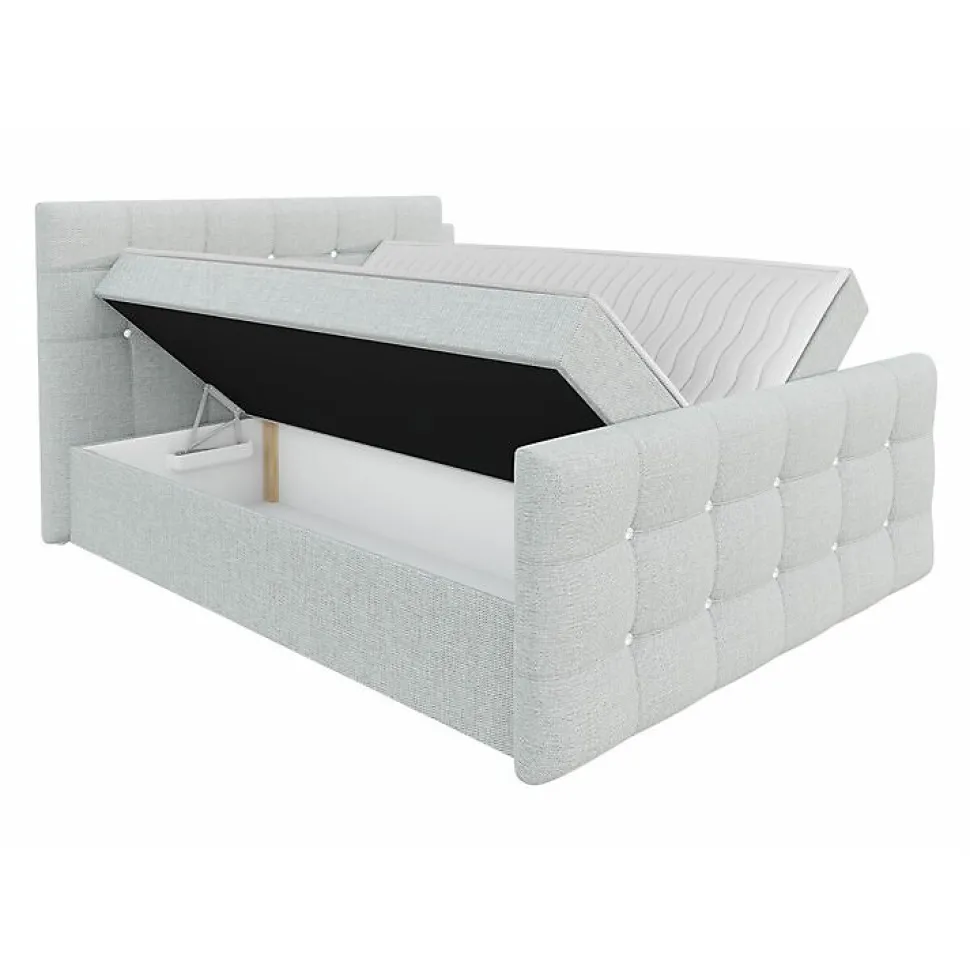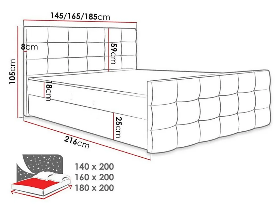 Lit continental Memphis 113 (Rico 01) Caractéristiques: Largeur: 145 cm; Origine: Union européenne; Sommier à lattes: Disponible; Matelas: Disponible; Boîte de literie: Disponible; Taille du matelas: 1400 x 2000 cm; Hauteur: 105 cm; Longueur: 216 cm; Poids: 119 kg; Matériau: Tissu; Pieds: Absent; Type de matelas: Avec ressorts (Bonnell); Fermeté du matelas: Moyen; Hauteur de la zone de couchage: 43 cm; Matériau du cadre: Stratifié; Caractéristiques du matelas: Mousse polyuréthane t30; Surmatelas: Disponible; Hauteur du matelas: 18 cm; Épaisseur du surmatelas: 1.5 cm; Caractéristiques du surmatelas: Lavable; Caractéristiques du surmatelas: À deux côtés; Caractéristiques du surmatelas: Antiallergique; Caractéristiques du surmatelas: Antifongique; Hauteur du cadre: 25 cm; Résistance: 20000 Cycles Martindale; Matériel supplémentaire: Bois; Dimensions de la tête de lit: 105 x 145 x 8cm; Tête de lit: Disponible; Mécanisme de levage: Ressort; Dimensions de la boîte à literie: 25 x 195 x 65cm; Bois: Pin; Code produit: 372671