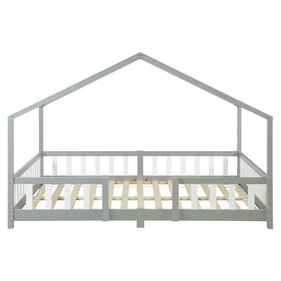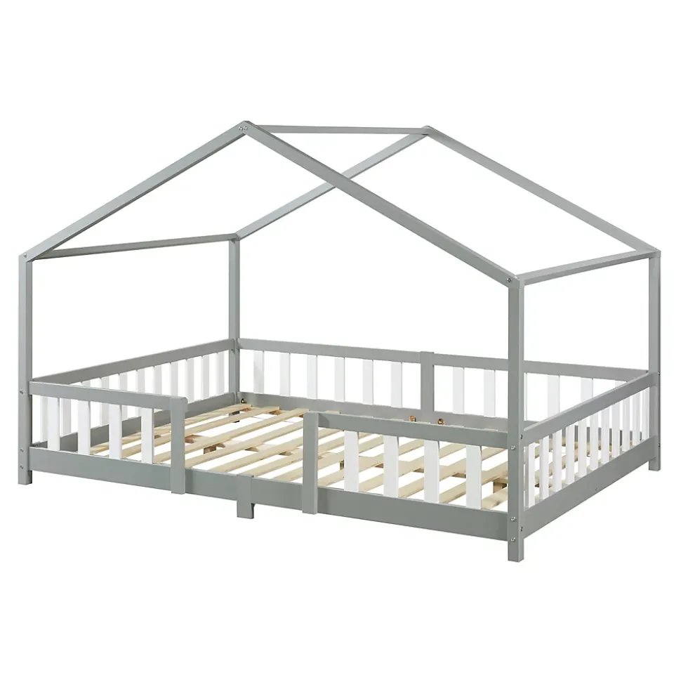 Lit d’enfant en forme maisonCe lit pour enfant en bois naturel transforme la chambre en un vritable petit cocon. Son design en forme de maison cre une atmosphère chaleureuse et invitante, idale pour rêver, jouer et se sentir en scurit. Il convient aussi bien aux filles qu‘aux garçons et s‘intègre facilement dans diffrents styles de dcoration.La barrière tout autour du lit n‘est pas seulement dcorative, elle sert galement de protection anti-chute, pour un sommeil paisible et rassurant au quotidien. La construction robuste assure une excellente stabilit et une utilisation fiable, même lors d‘un usage intensif.Description :- lit d’enfant en forme maison- construction robuste- montage rapide et simple- entretien facile- avec barrière de protection- capacit de charge jusqu’à 150 kgDimensions :- totales (lo x la x ha) : 207 x 146 x 138 cm- surface de couchage (lo x la) : 200 x 140 cm- hauteur du sol au bord du toit : 85 cm- largeur de l’entre : 50 cm- hauteur de la clôture : 34 cm- hauteur des pieds : 5,5 cmMatière :- lit: bois de pin- sommier à lattes: contreplaquCouleur :gris / blanc, laqu matContenu de la livraison :1 x lit d’enfant1 x sommier à lattes standardVeuillez noter que le matelas, les oreillers, la couverture et les autres objets de dcoration ne font pas partie de l’offre.Pour des raisons logistiques, le retrait sur place n‘est pas possible. Livraison au trottoir ou à la porte d‘entre, sans montage. Produit de la marque :[en.casa]