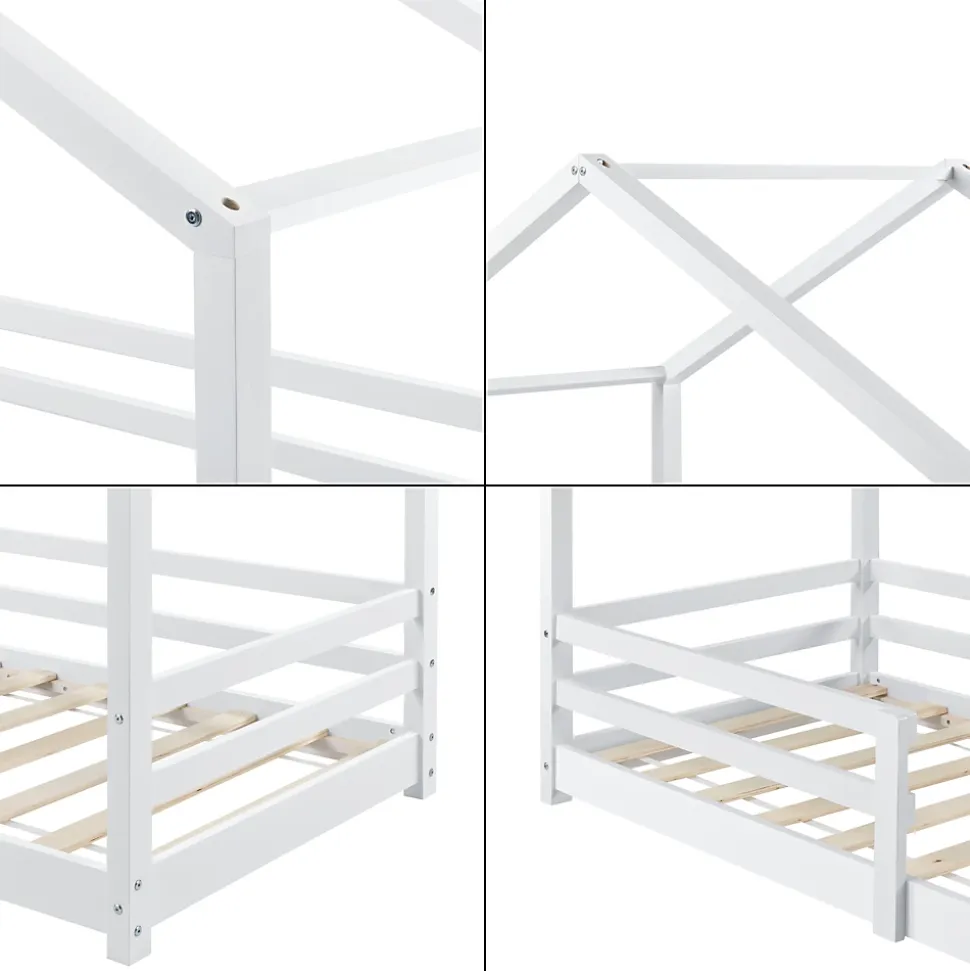 - Ce lit solide en pin est conçu aux enfants. Grâce au design maison, il peut être l’ornement de n’importe quelle chambre d’enfant. Pour assurer la sécurité de votre enfant, le matelas est encadré par des barreaux de protection.