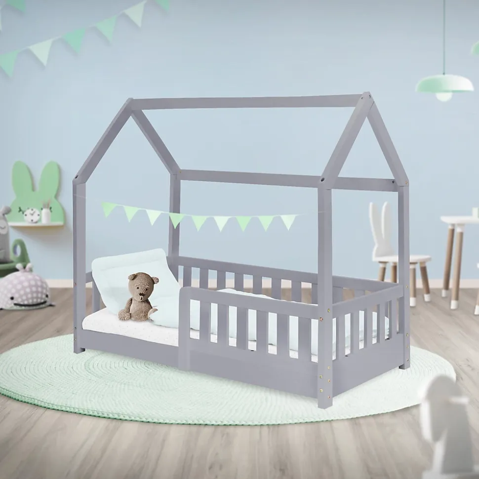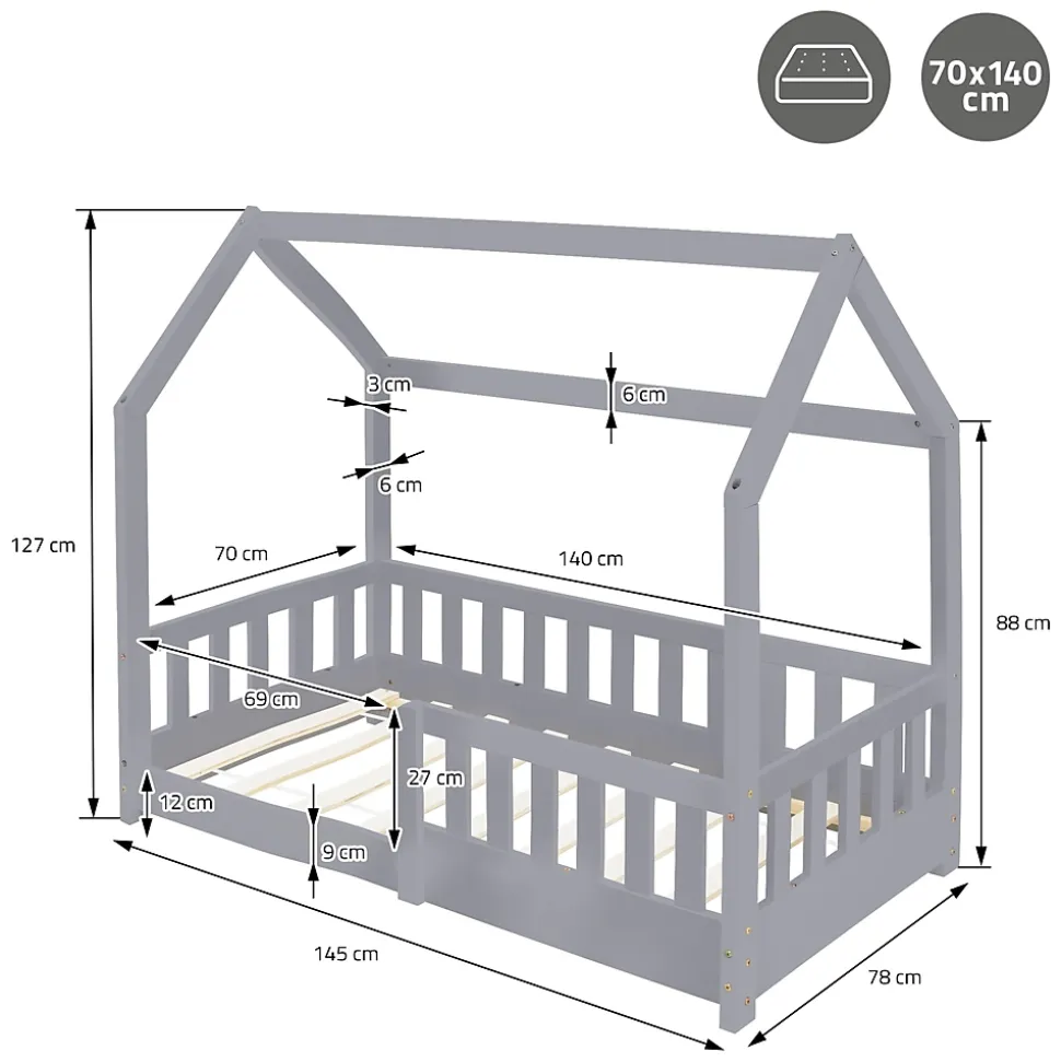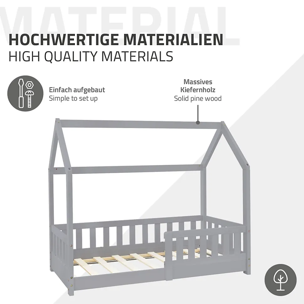 Description du produit :Le lit d’enfant moderne avec toit de ML-Design convient parfaitement comme lieu de retraite pour tes enfants. Il dispose d’une protection antichute sûre, de sorte que toi aussi, tu peux dormir en toute tranquillité la nuit.Le solide sommier à lattes peut supporter jusqu’à 120 kg. Plus d’un enfant peut donc dormir ou jouer ici.Grâce au cadre en bois stable du lit, tu peux ajouter de superbes décorations sur le toit. Tu peux par exemple y installer des guirlandes lumineuses LED, des moustiquaires, de simples rideaux ou des carillons. Ainsi, le simple cadre de lit en bois se transforme en un superbe lieu de retraite pour ton enfant.En quelques gestes, tu as monté le lit d’enfant et il est prêt à faire plaisir à ton enfant.Caractéristiques du produit :Extrêmement robusteFacile à monterPeut supporter jusqu’à 120 kgEn bois de pin naturelNombreuses possibilités d’aménagementLivraison :1 x lit d’enfant1 x sommier à lattes1 x toit1 x instructions