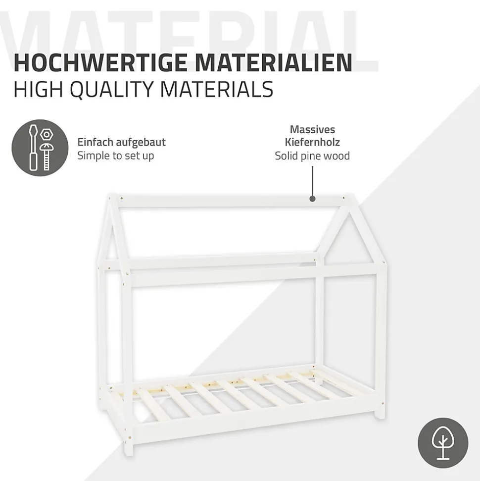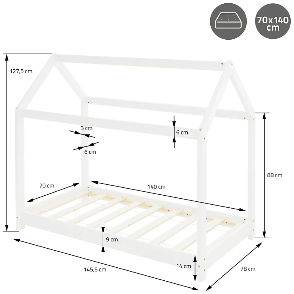 Description du produit:Les entretoises verticales sont idéales pour décorer le lit avec des couvertures ou des draps, tes enfants peuvent construire eux-mêmes leur propre fort de manière simple et rapide. La surface de couchage de 140 x 70 cm est idéale pour un enfant jusqu’à 6 ans.Le lit d’enfant de ML-Design est à la fois un lieu de sommeil confortable et un lieu de jeu passionnant. Le design ludique est super adapté aux enfants et a en outre un effet très qualitatif dans la chambre de ton enfant. Le bois de pin stable assure une construction solide et performante, même lorsque le lit est fortement sollicité.Caractéristiques dela structure :Stable et sûrFacile à monterBois de pin de haute qualitéBeau lit d’enfant de ML-DesignLieu de jeu et de sommeil parfait pour ton enfantContenu de la livraison:1 x lit d’enfant de ML-Desig
