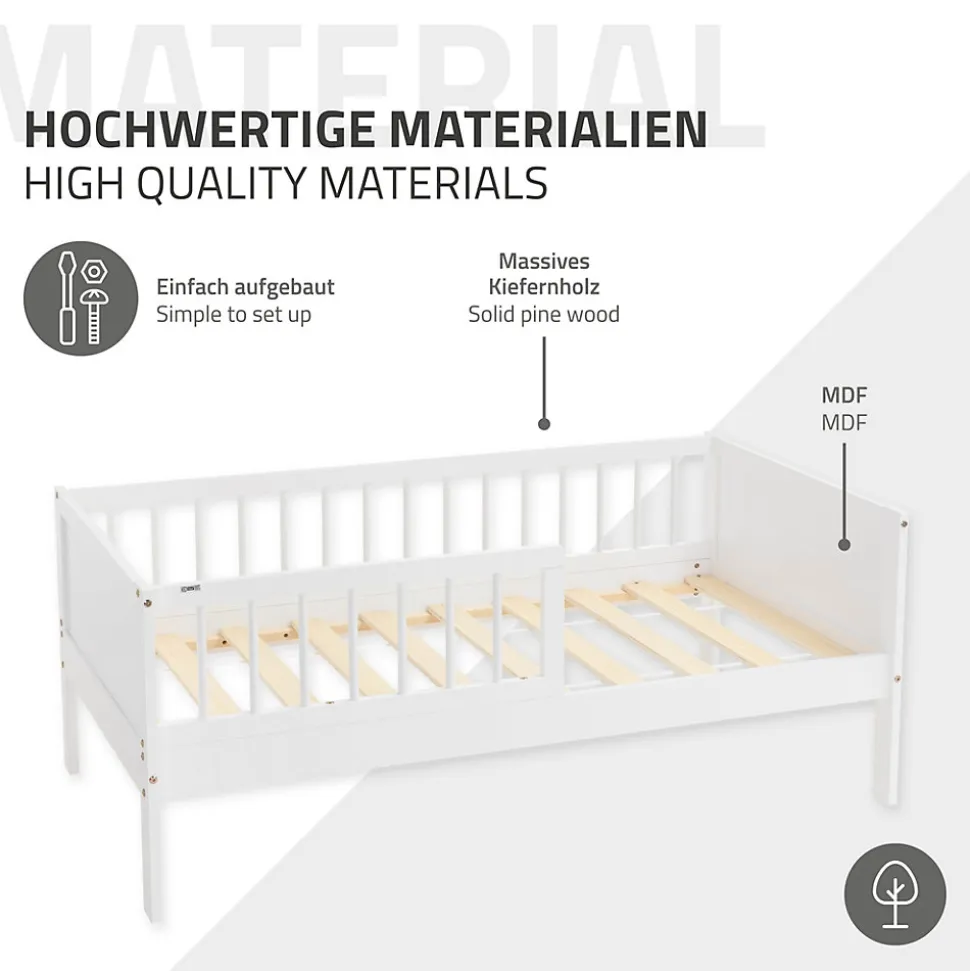 Lit d’enfant ML-Design 70×140 cm simple blanc en bois de pin avec sommier à lattes sans matelas
