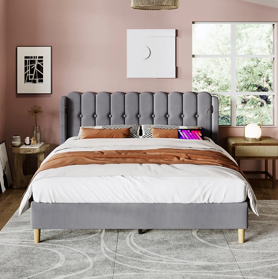 - 【Confort optimal】 Le lit et la tête de lit sont recouverts de lin gris doux, offrant une sensation agréable et chaleureuse. Le design élégant avec des panneaux à grille ajoute une touche rustique et moderne à votre chambre.