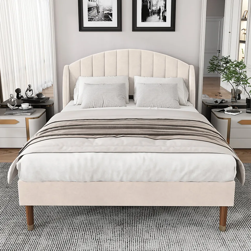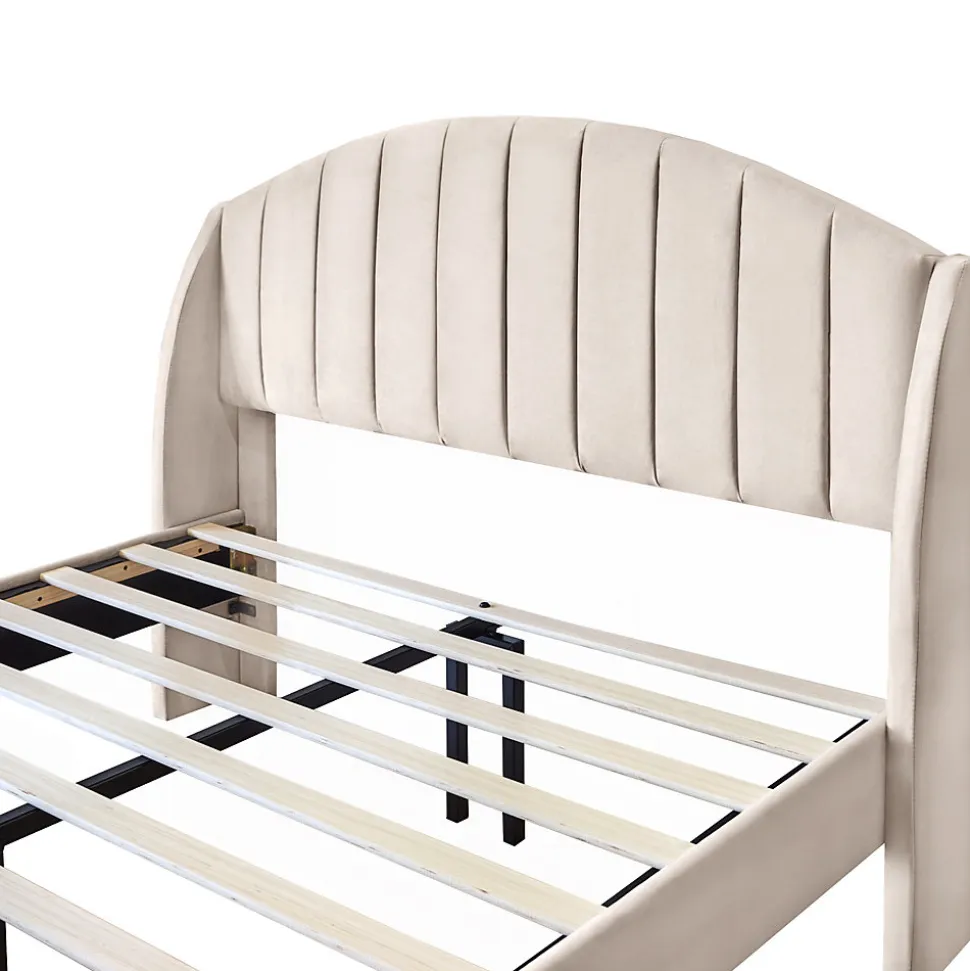 ▶ ▶ Détails ▶────────────────● Dimensions du produit : 196 x 148 x 108 cm● Matériau principal : Velours● Couleur : Beige● Capacité de charge maximale : 300 kg● Hauteur sous le lit : 20 cm● Surface de couchage : 140 x 190 cm (Sans matelas)● Matériau des lattes : Bois● Poids du produit : 28.5 kg● Nombre de colis : 2● Méthode de montage : Installation par soi-même► Remarques ►※ Ce produit est expédié en 2 colis, qui peuvent arriver à des moments différents. Merci de votre patience.※ Une marge d’erreur de 2 à 3 cm peut survenir en raison de mesures manuelles.※ Des variations de couleur peuvent apparaître en raison des effets de lumière. Veuillez vous référer au produit réel reçu.※ Si vous avez des questions lors de l’installation, n’hésitez pas à nous contacter dès que possible.