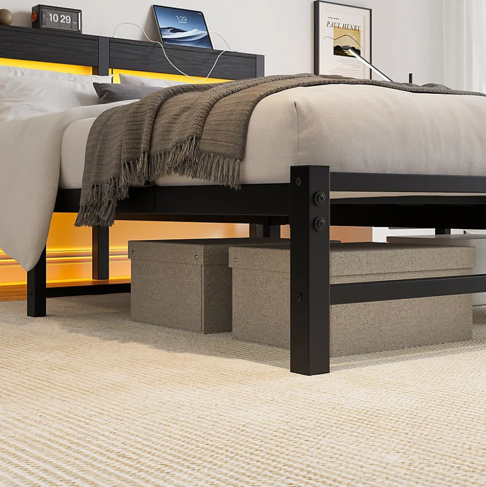 - 【Sous-lit spacieux】 Avec 27 cm de dégagement, le lit offre un rangement pratique pour valises, boîtes ou accessoires, optimisant la chambre et laissant passer facilement un robot aspirateur, assurant un espace toujours propre.
