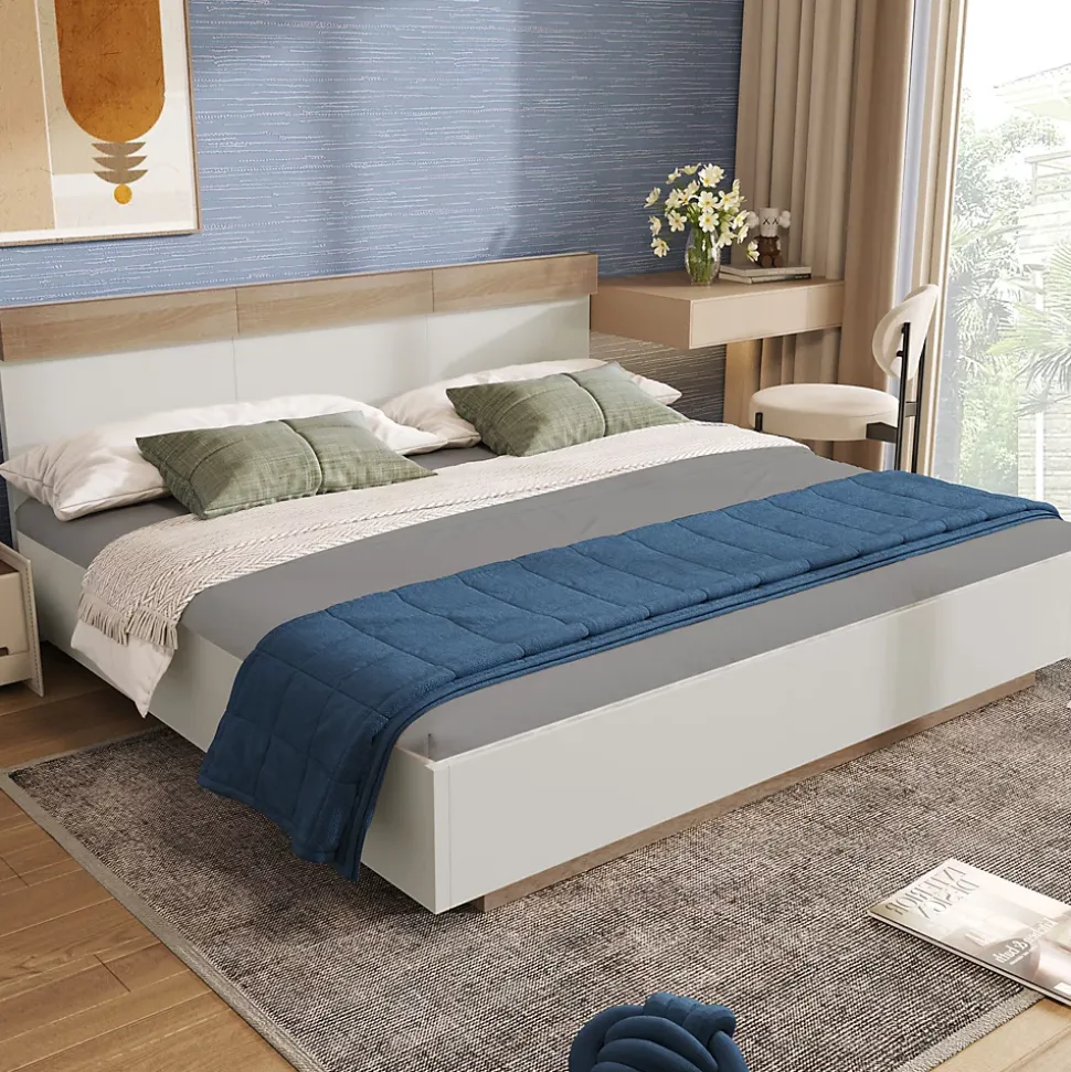 ▶ ▶ Détails ▶────────────────● Nom du produit : Lit en bois● Dimensions totales : 205 x 144 x 90.5 cm● Surface de couchage : 140 x 200 cm● Hauteur du pied de lit : 26 cm● Couleur : Sonoma Chêne + Blanc● Poids maximal supporté : 181 kg / 400 lbs● Hauteur du dossier : 90.5 cm● Matériaux : Bois massif + MDF● Nombre de colis : 2● Dimensions détaillées : Veuillez consulter l’image des dimensions► Remarques ►※ Ce produit est livré en 2 colis. Ils peuvent ne pas arriver en même temps. Merci de patienter.※ En raison des mesures manuelles, des écarts de 2-3 cm peuvent survenir.※ Les couleurs du produit peuvent légèrement varier en fonction de la lumière ou de l’écran. Veuillez vous référer au produit réel.※ Pour toute question concernant le montage, veuillez contacter notre service client dès que possible.