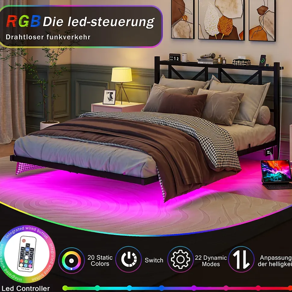 - 【Éclairage LED sous le lit】 Bande LED personnalisable sous le lit avec contrôle des couleurs et intensité, idéale pour créer des ambiances relaxantes, romantiques ou festives, parfaite pour lecture, films ou soirées conviviales.