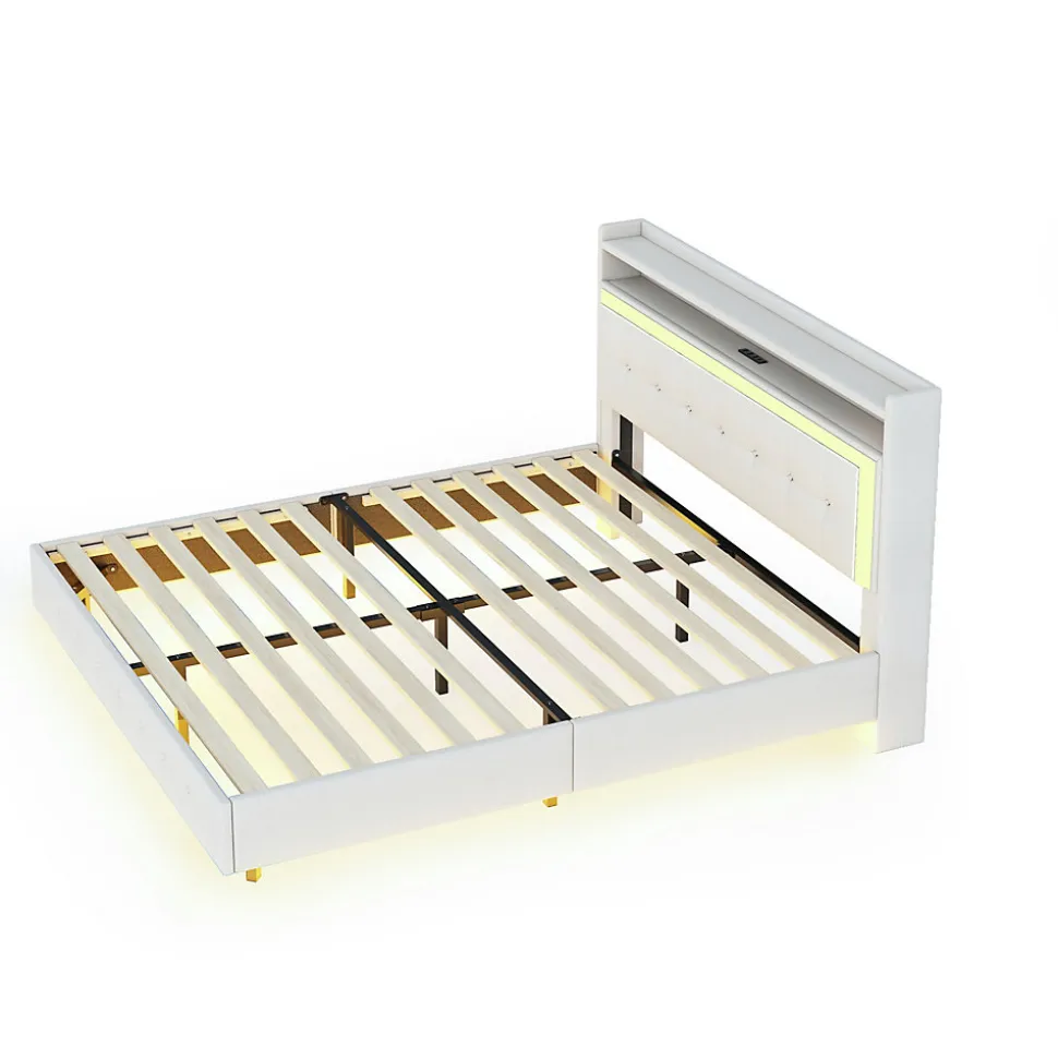 - 【Éclairage LED Changeant】Les LED intégrées au pied et à la tête du lit peuvent changer de couleur, créant une ambiance unique et relaxante pour s’endormir ou profiter d’un moment calme sans lumière agressive.