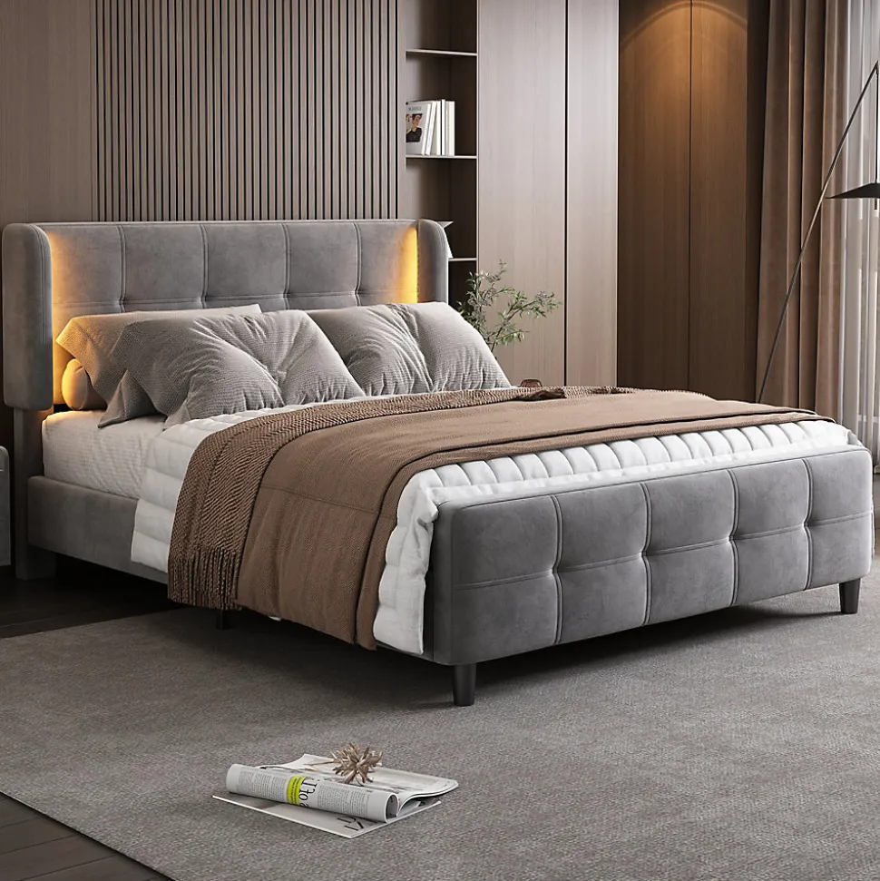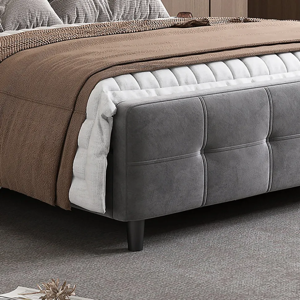 - 【Design Élégant】 Le design moderne et raffiné du lit, avec un tête de lit et un pied de lit matelassés, apportent une touche luxueuse à votre chambre. Les coutures du tissu ajoutent à l’esthétique tout en garantissant un confort optimal.
