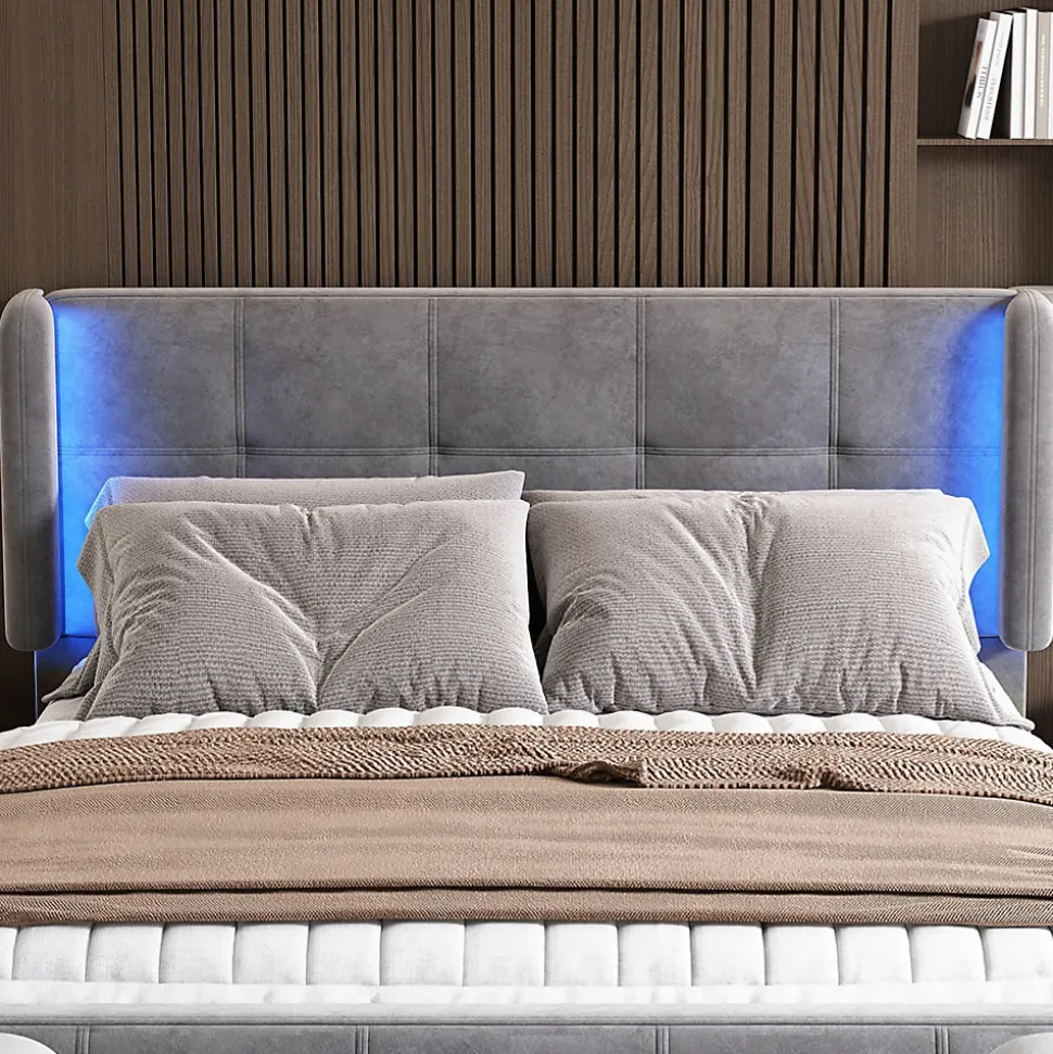 - 【Éclairage Ambiance】 Ce lit est équipé d’une bande LED 16 couleurs, offrant quatre modes différents : clignotement, stroboscope, fondu et lisse. Personnalisez l’éclairage pour chaque moment de votre journée et créez une atmosphère romantique ou dynamique selon vos préférences.