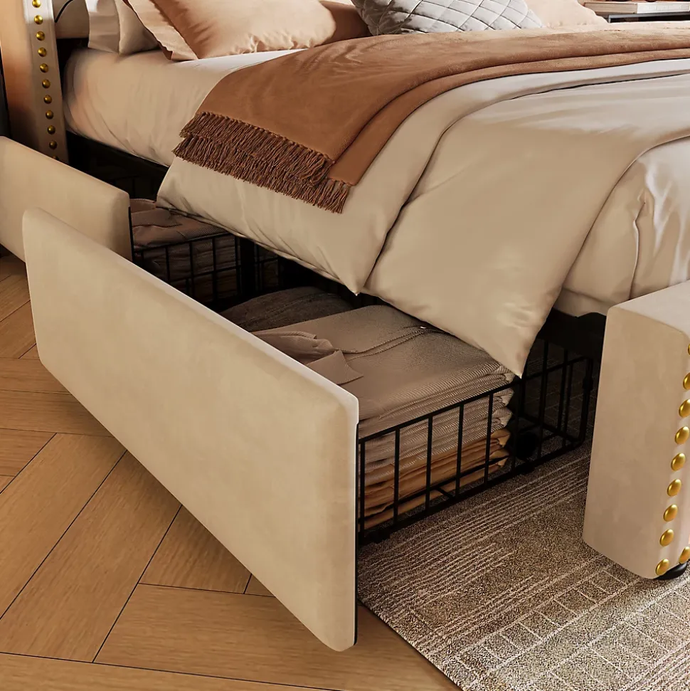 - 【Design Raffiné】 Le velours doux et les clous décoratifs associés aux lignes élégantes et aux panneaux latéraux fermés apportent une allure sophistiquée tout en protégeant la matelas de la poussière et en valorisant l’espace de la chambre.