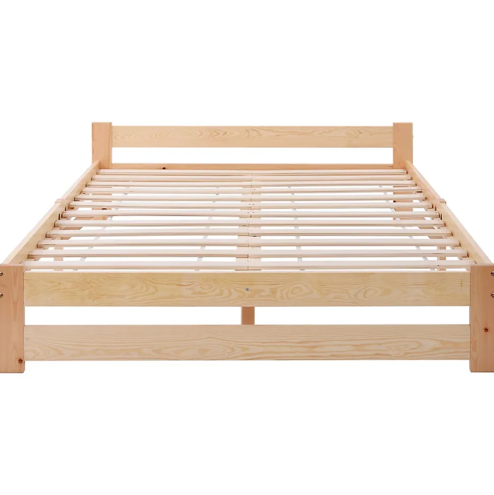 ▶ ▶ Détails ▶────────────────● Nom du produit : Lit en bois● Dimensions totales : 205 × 147 × 49 cm● Poids total : 23 kg● Poids du colis : 25 kg● Matelas compatible : 200 × 140 cm (non inclus)● Capacité de charge : 150 kg● Distance du sol au dessous du lit : 20 cm● Couleur : Naturel● Matériau du cadre : Kiefer● Matériau des lattes : Bois● Montage : Auto-installation● Nombre de colis : 1► Remarques ►※ Des écarts de 2 à 3 cm peuvent survenir en raison de mesures manuelles.※ Les images montrent le produit réel, mais des différences de couleur peuvent apparaître à cause de l’éclairage.※ Si vous avez des questions pendant l’installation, veuillez nous contacter rapidement.